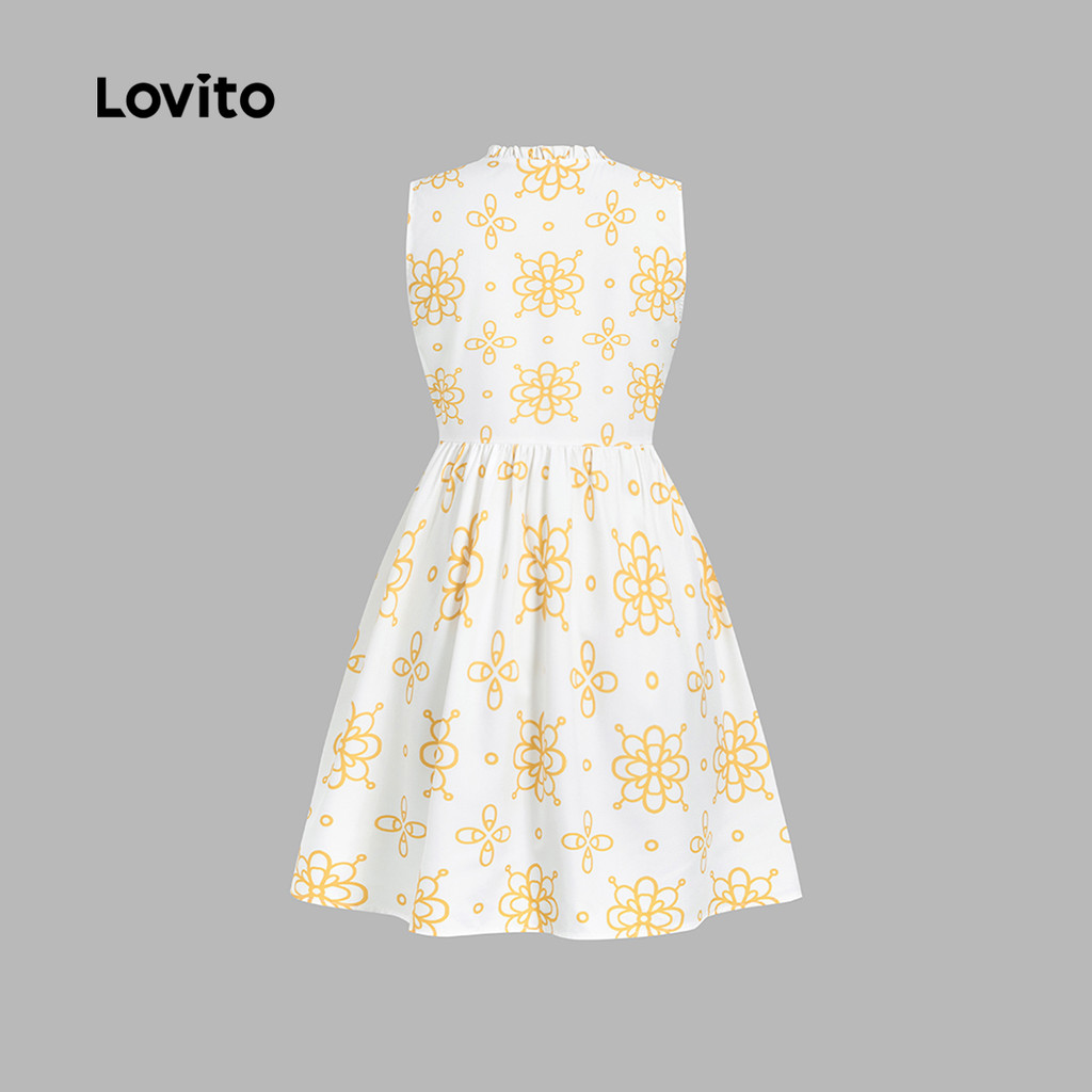 Lovito Vestido Casual de Botão com Babado Na Bainha para Primavera/verão para mulheres L155ED883