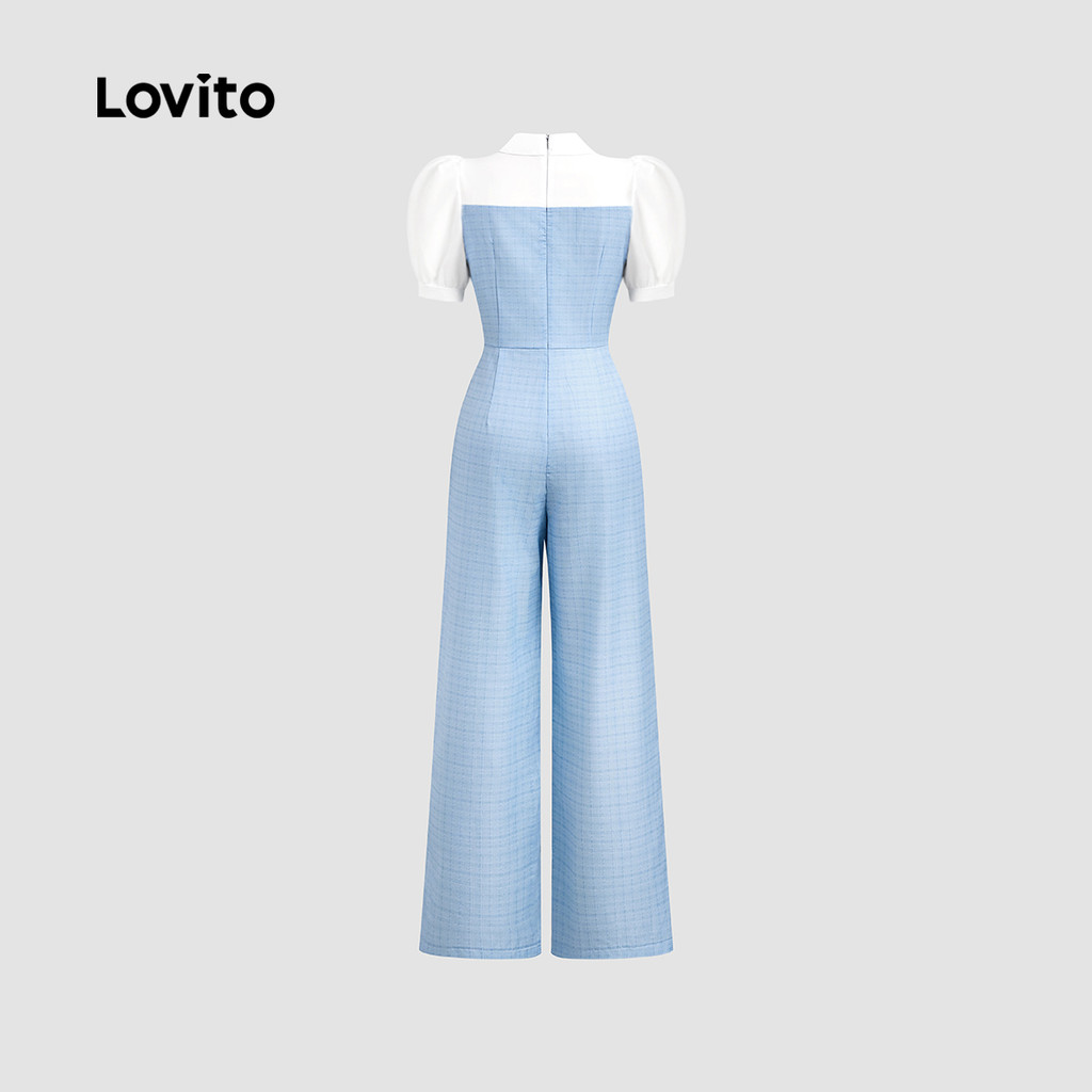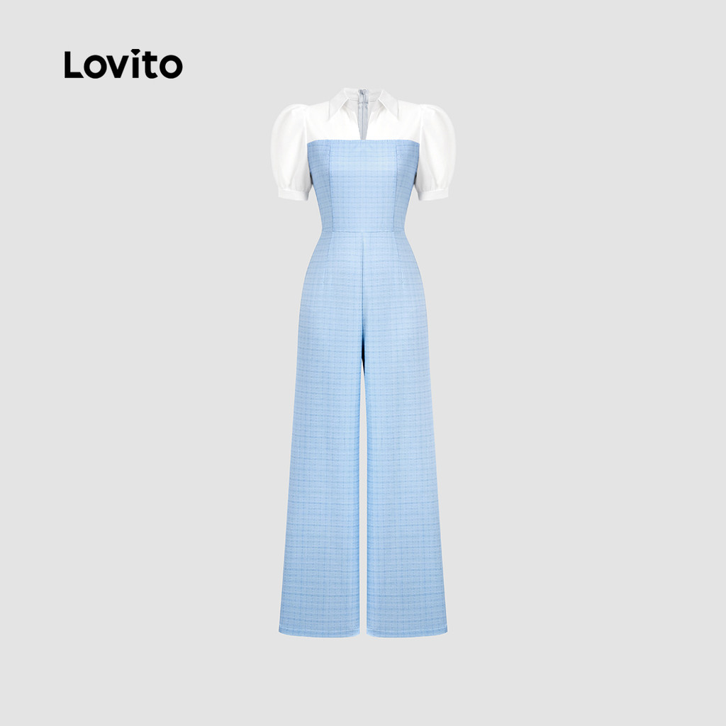 Lovito Macacão Feminino Colorblock com Zíper Primavera/Verão Azul para Mulheres L137ED822