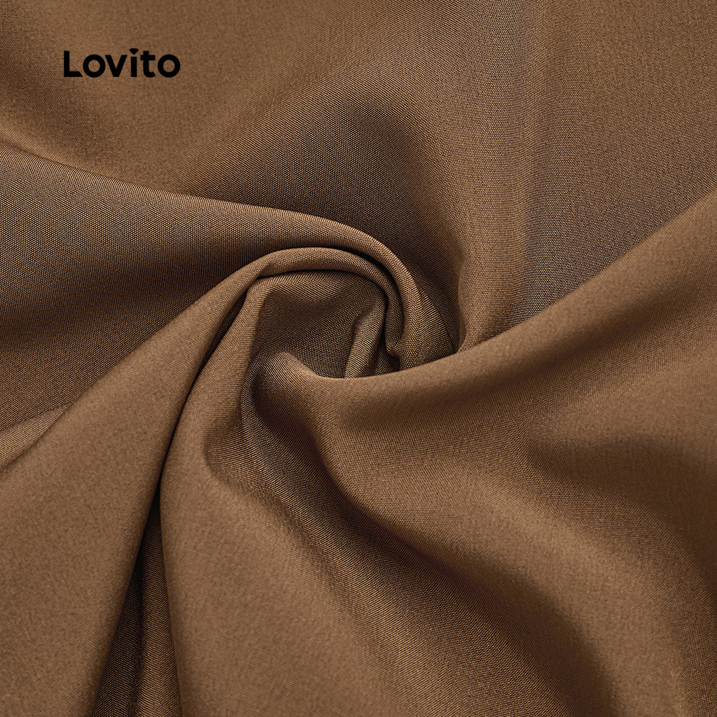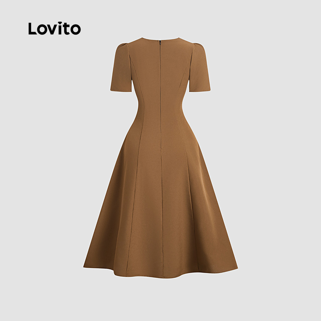 Lovito Vestido Elegante com Zíper para Primavera/verão Vestido Marrom para Mulheres L154ED242