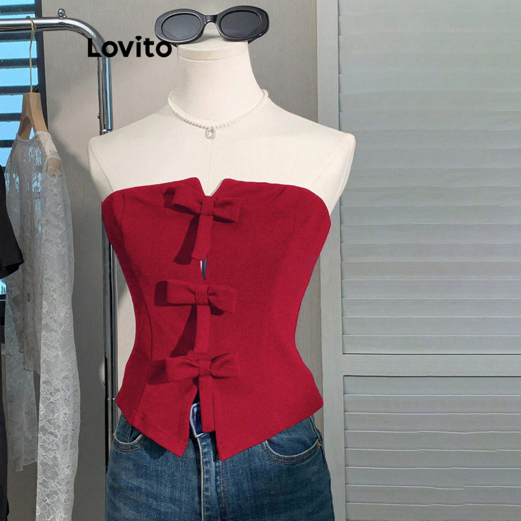 Lovito Regata Feminina Primavera Verão Com Laço Delicado L104ED993