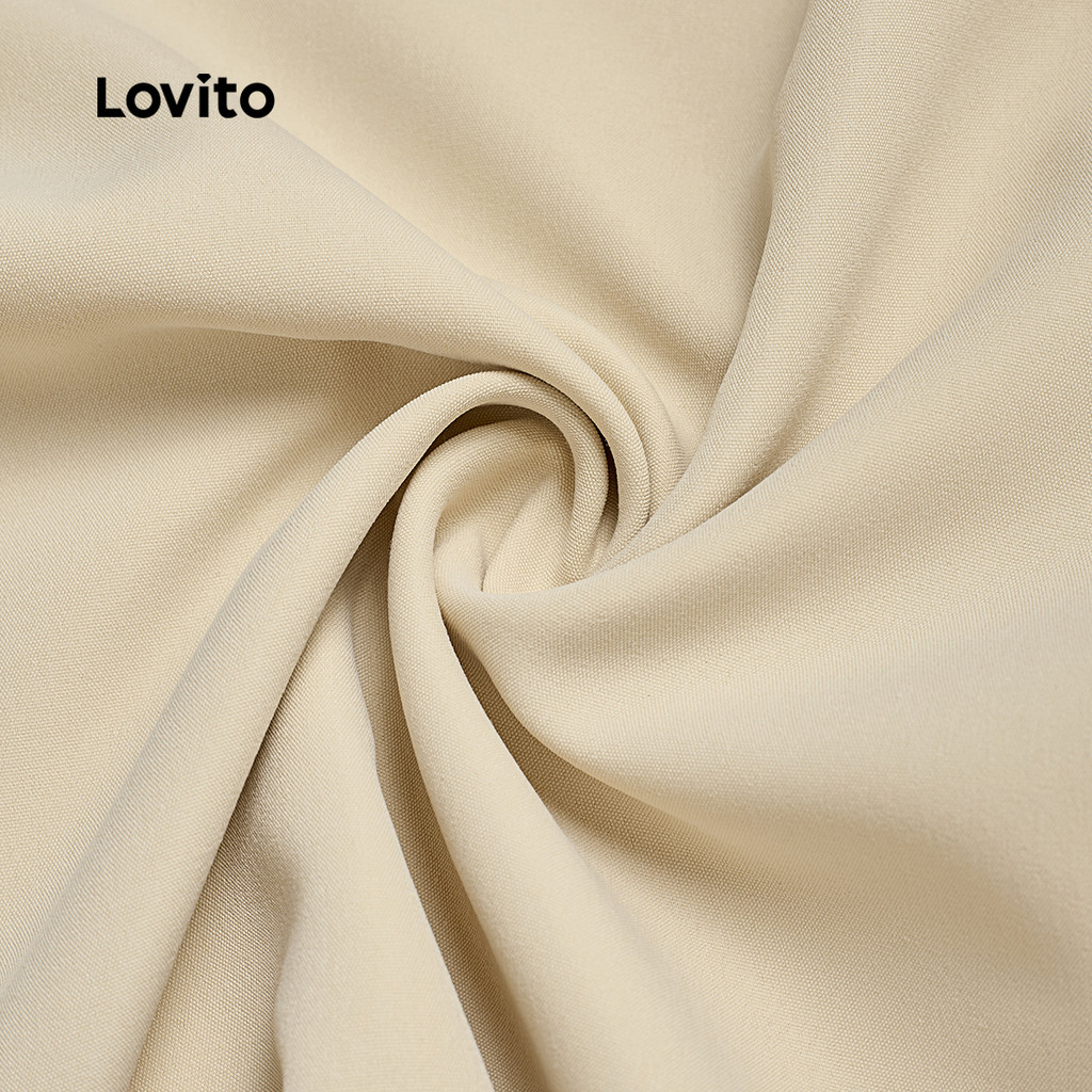 (New) Lovito Saias Casuais Drapeadas Primavera/verão Saias Leves Caqui para mulheres L151AD287