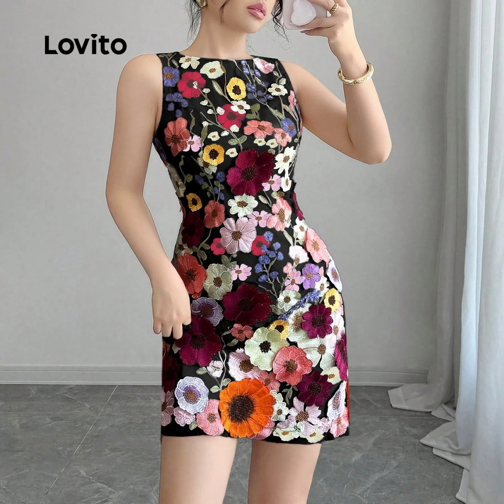 Lovito Vestido Elegante de Flores Primavera/verão para Mulheres L154LD031