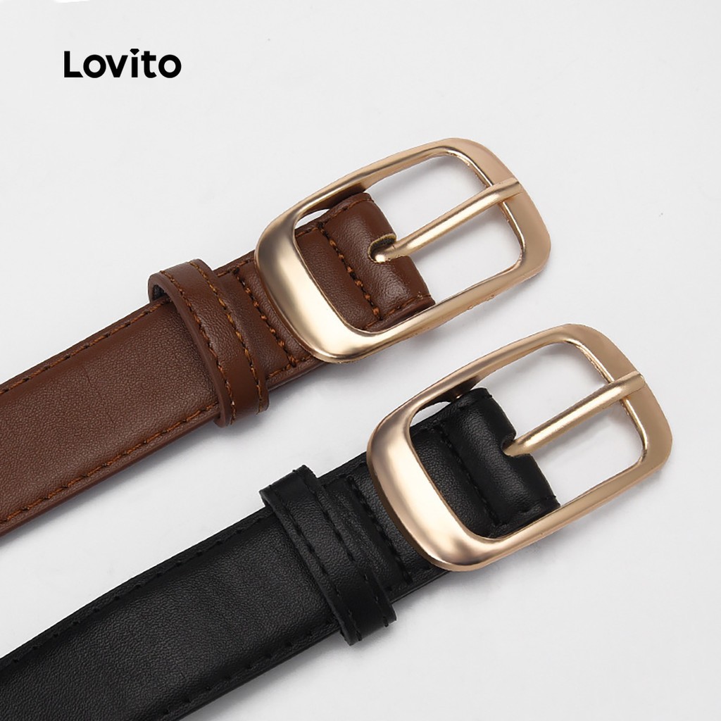 Lovito Cinto Casual de Metal para Todas As Estações Preto para Mulheres LFA83217