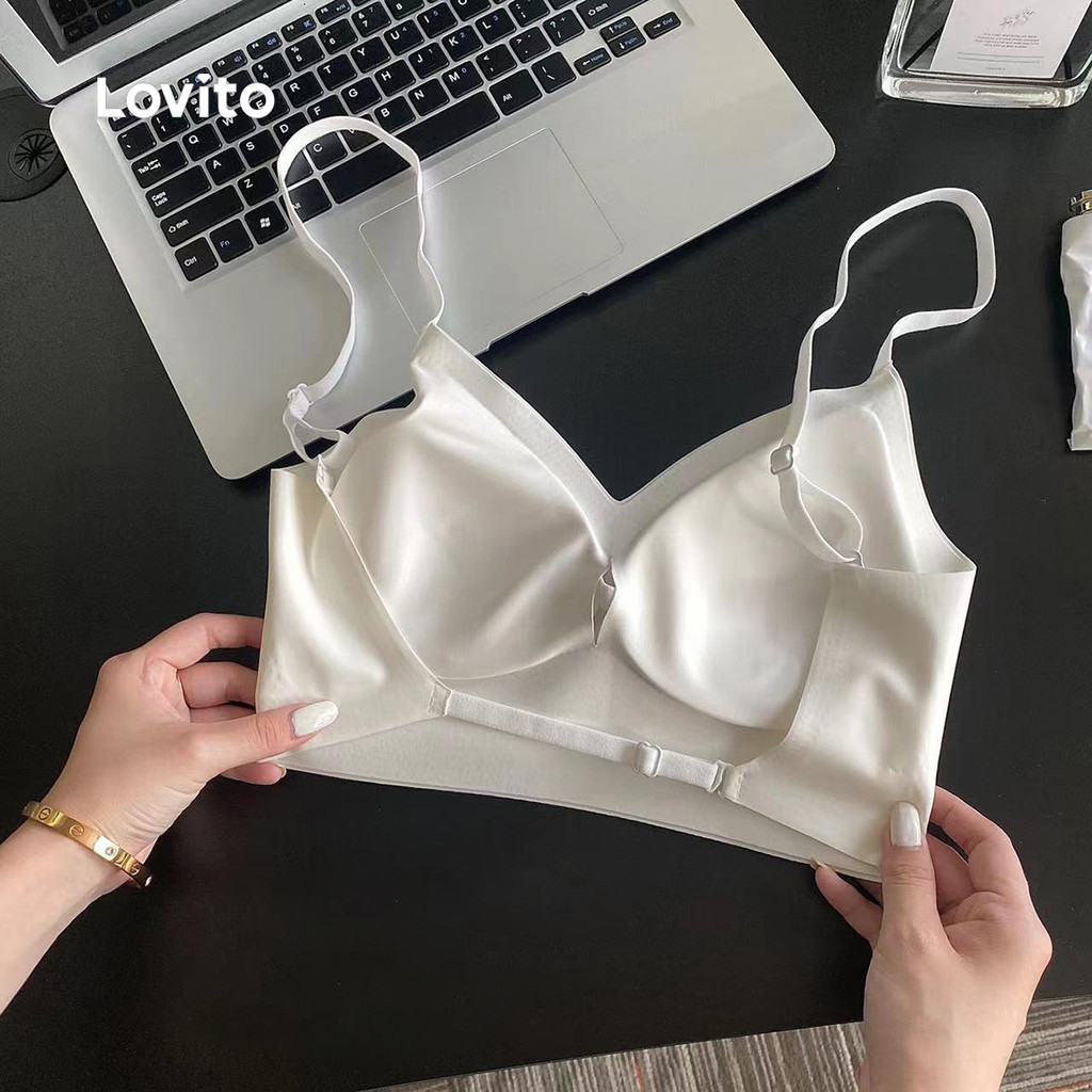 Lovito Sutiã Bralette Básico de Textura Delicada para Todas As Estações Branca para Mulheres LNL107X008