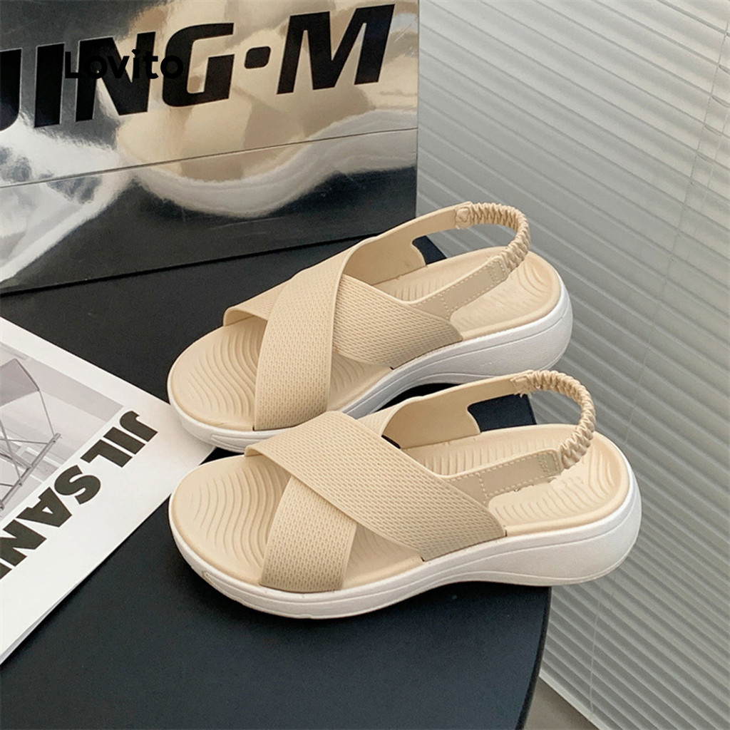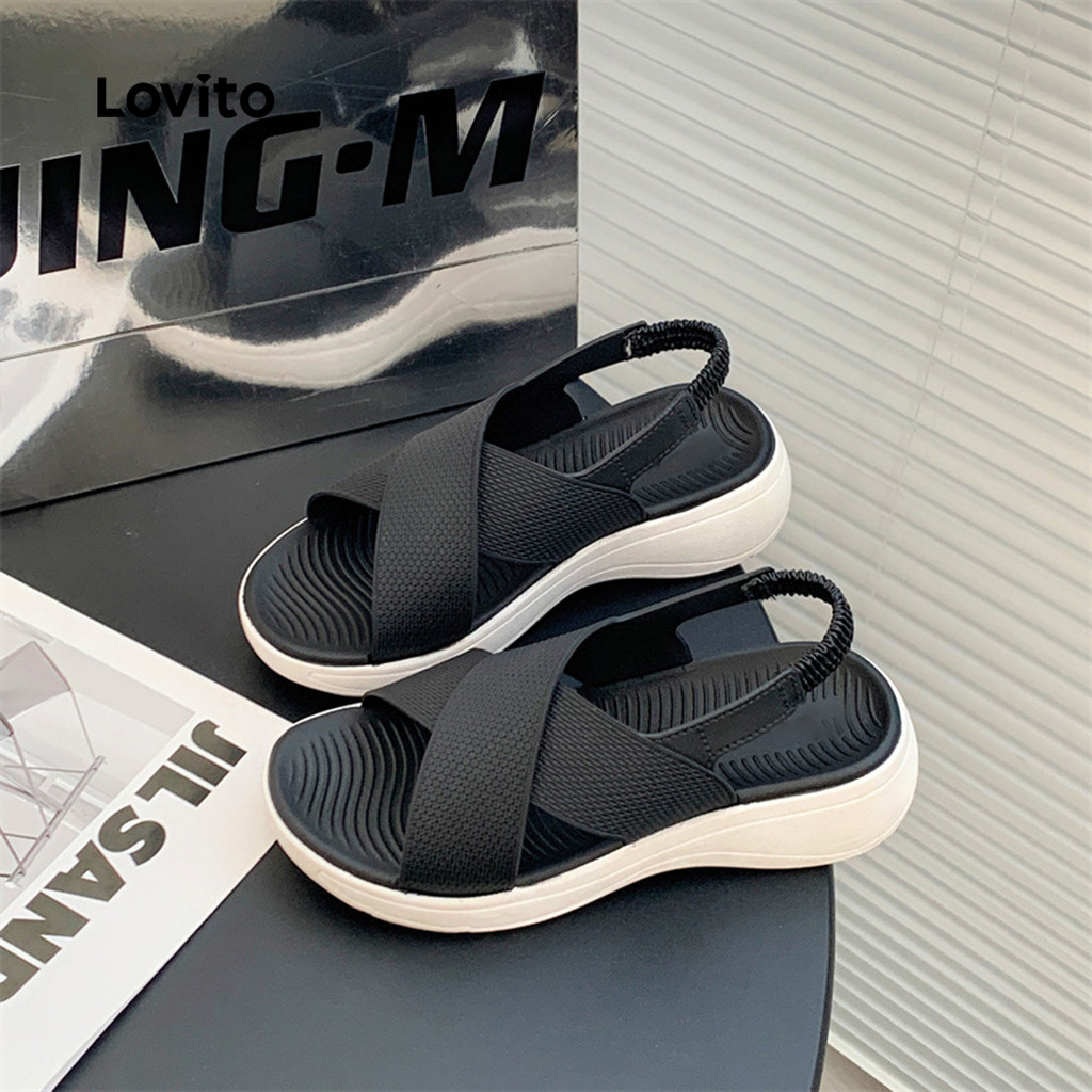 Lovito Sandálias Casuais Planas Cruzadas para Deslocamento O Ano Todo Pretas LFA86044