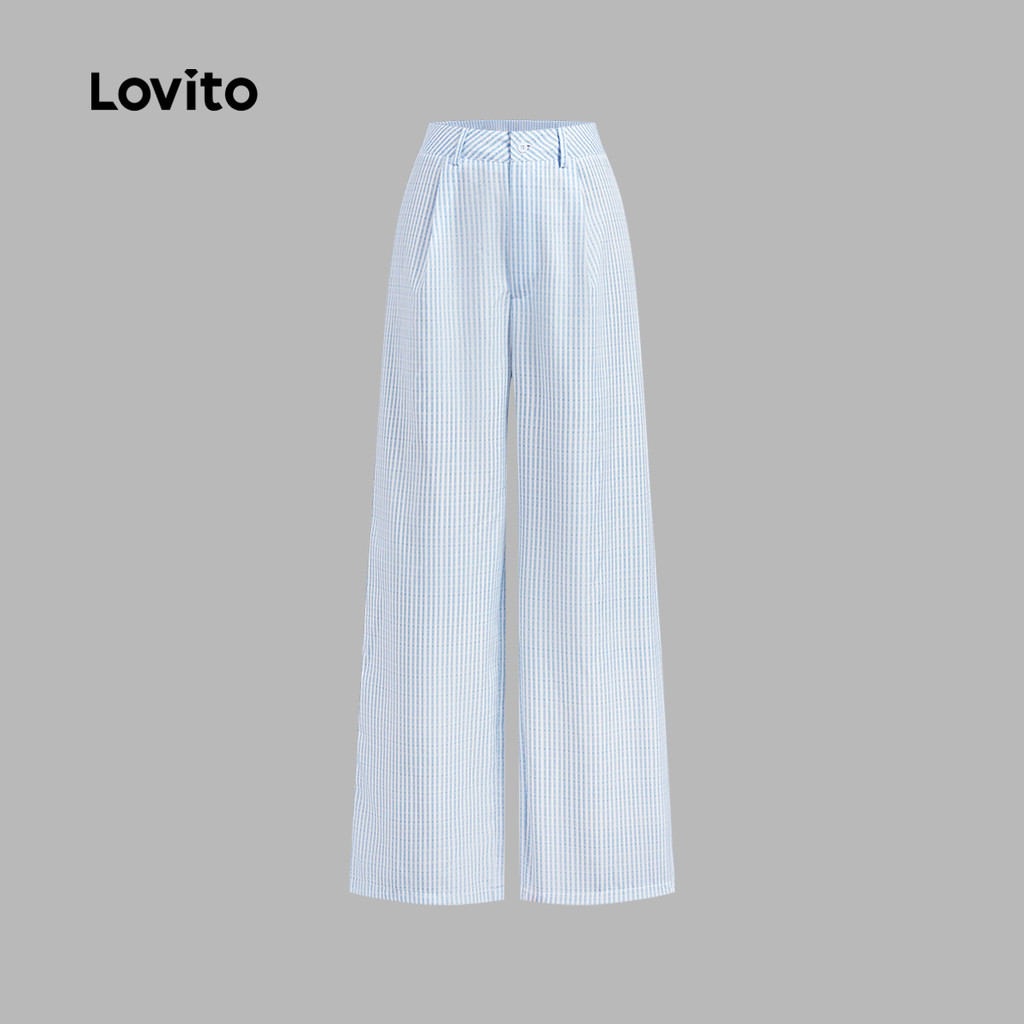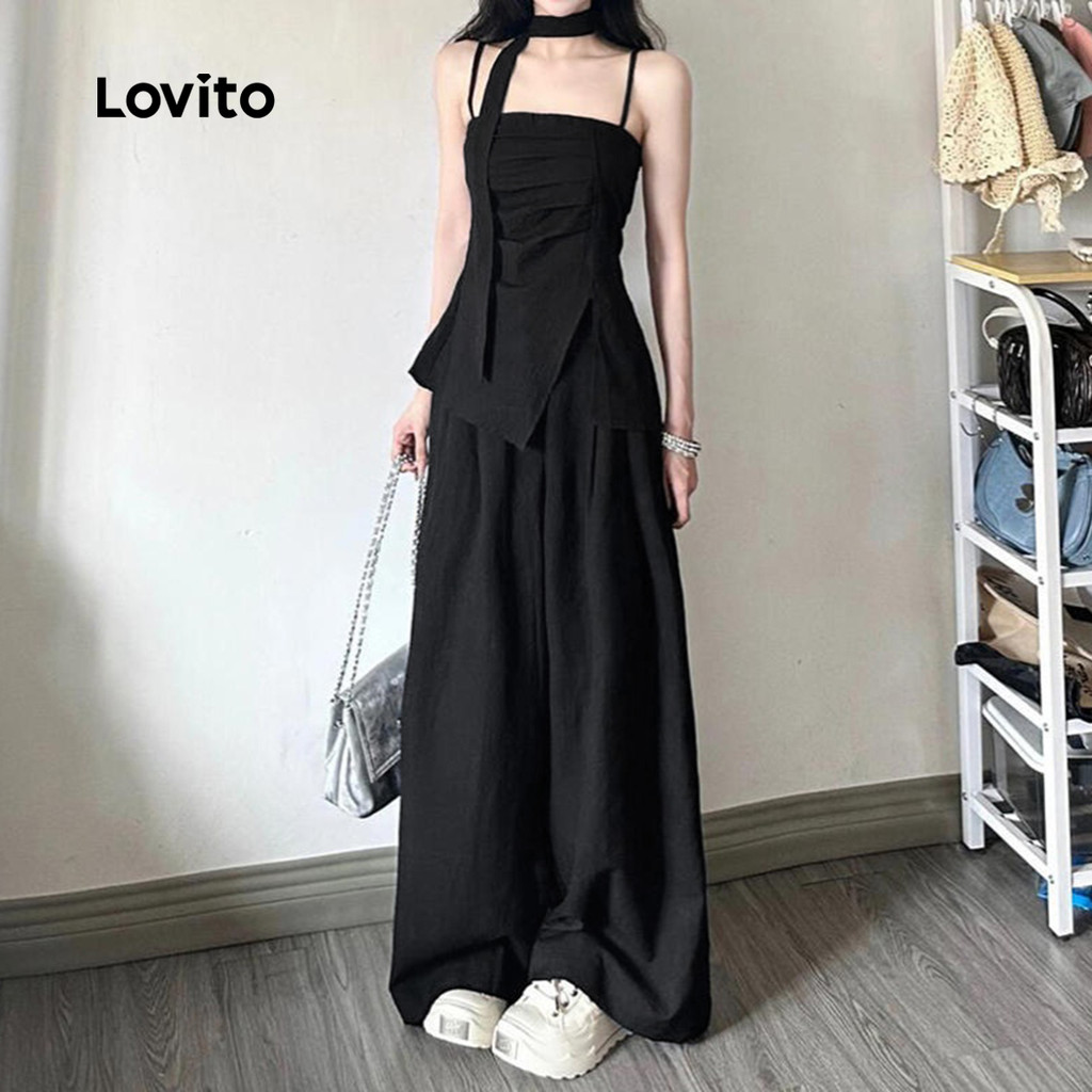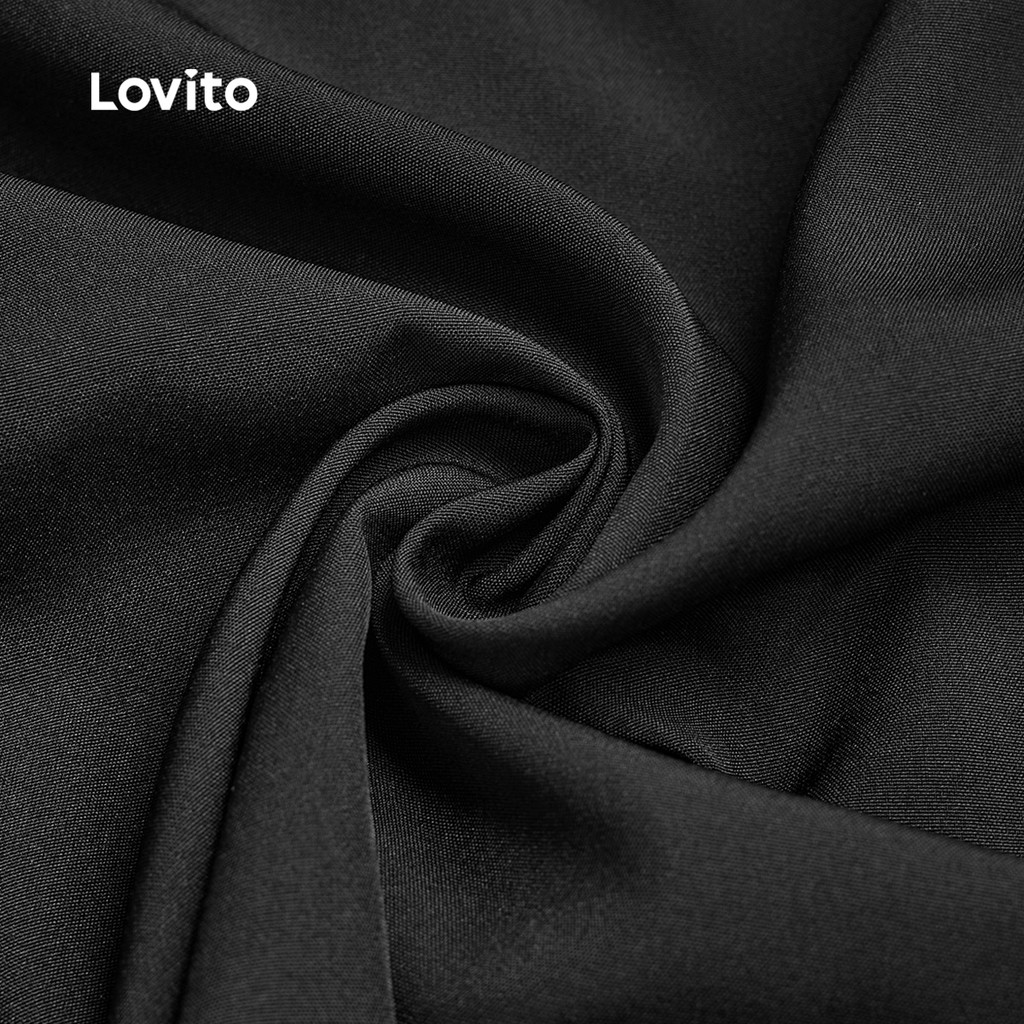 Lovito Conjuntos de Calças Elegantes com Fita Primavera/verão Calças Pretas para mulheres L142LD229