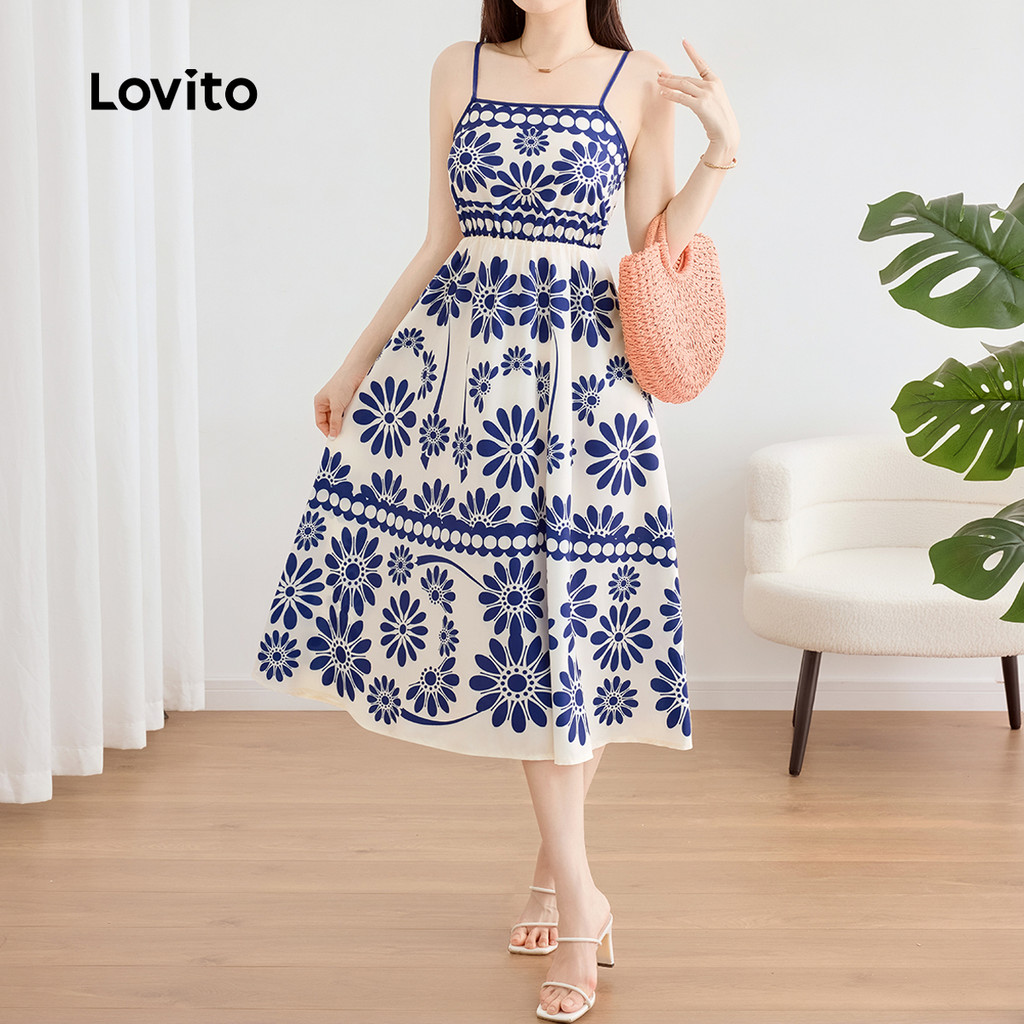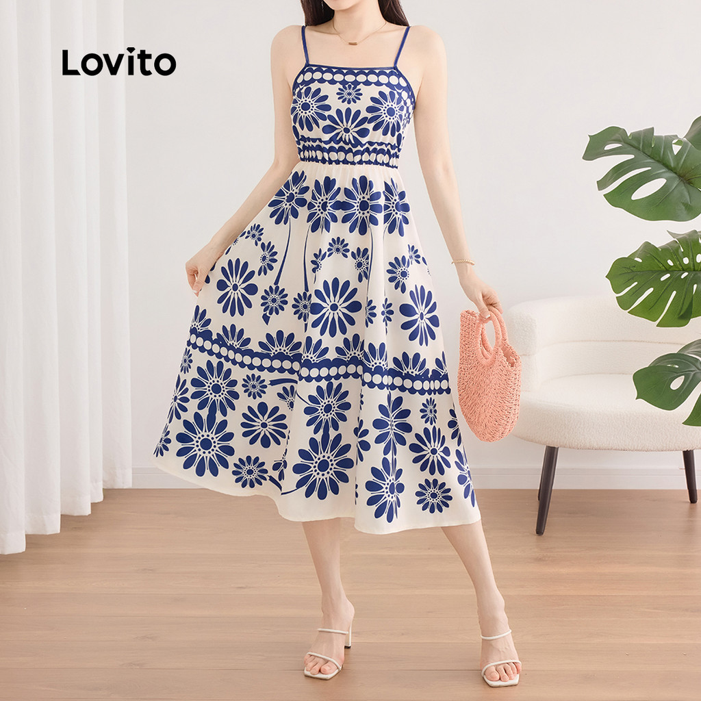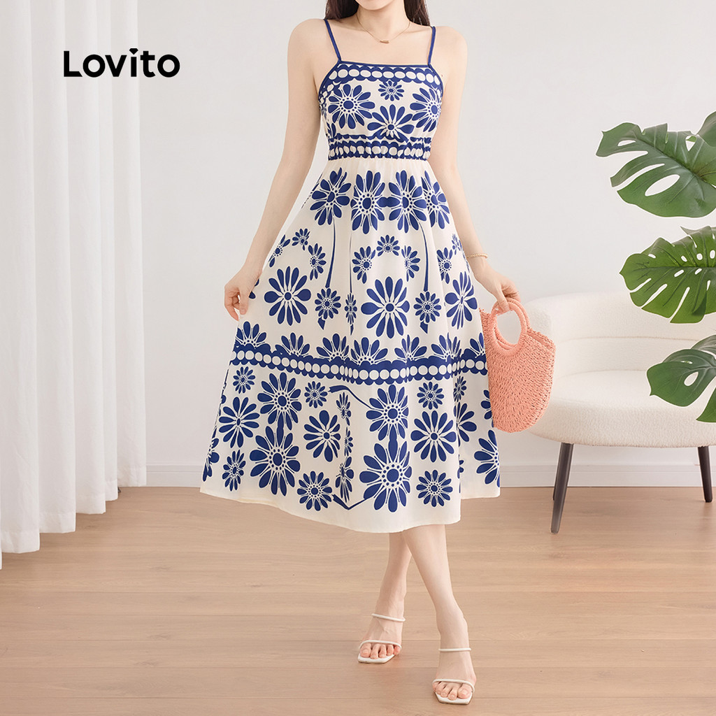Lovito Vestido Casual de Cores em Bloco com Fita Contrastante para Primavera/verão Azul para mulheres L243AD1730