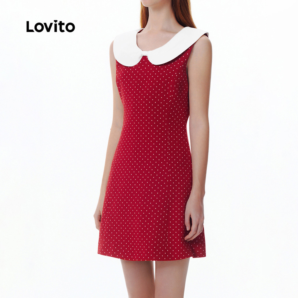 Lovito Vestido Fofo Clássico E Versátil Em Blocos De Cores Vermelho Primavera/verão Ideal Para Mulheres L151AD050