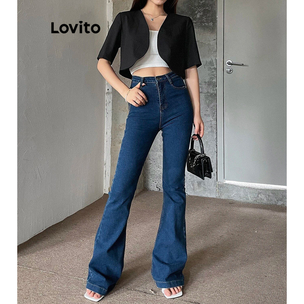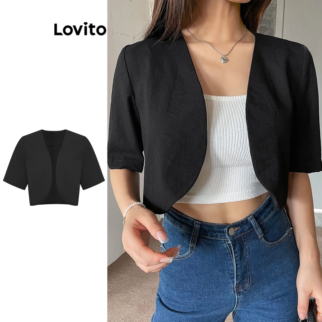 Lovito Blazer Feminino Básico Liso Corte Casual Para Mulheres L74ED070