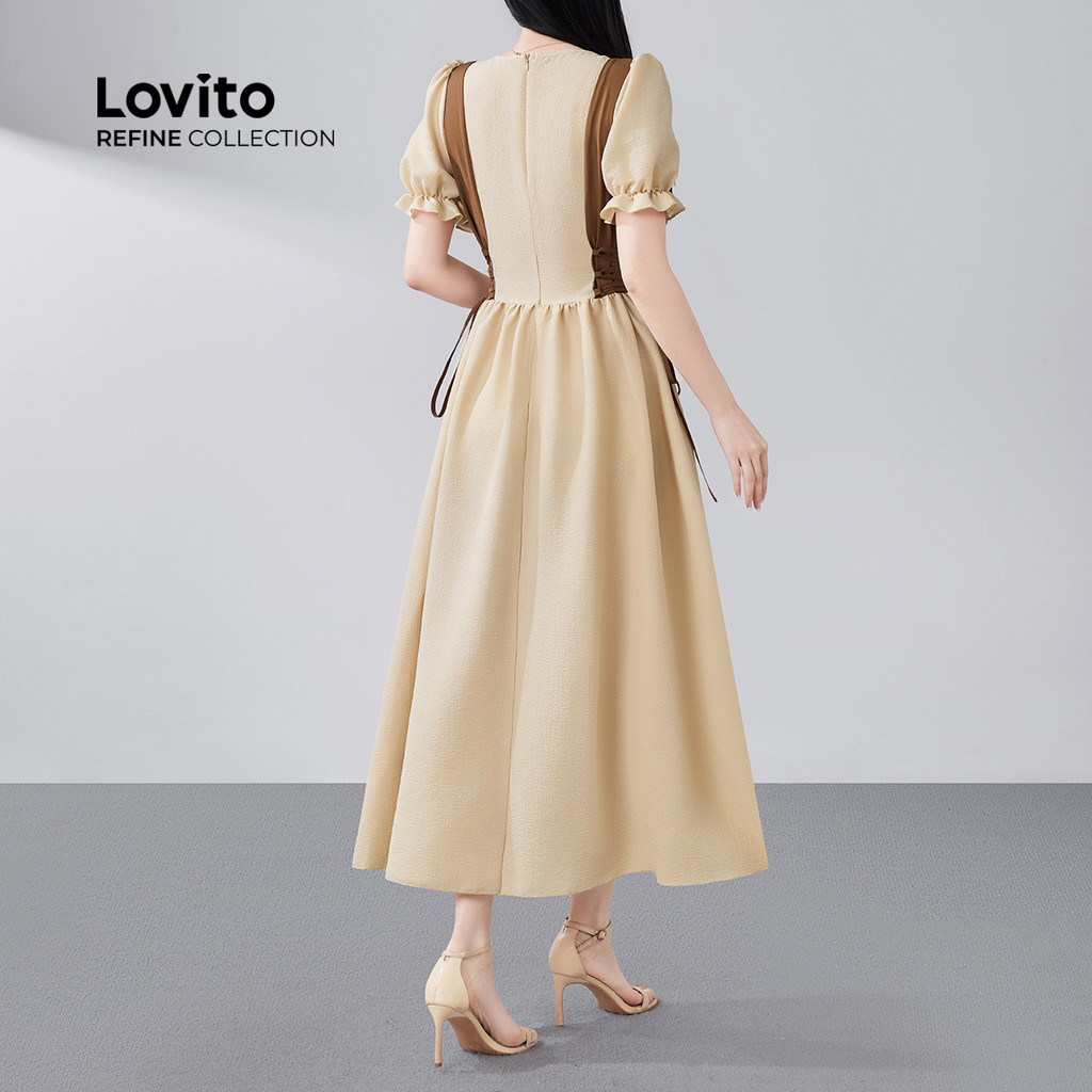 (Lovito Refine) Vestido Boho Tecido com Alface Zíper Vestido Primavera/verão para Mulheres LR29ED005