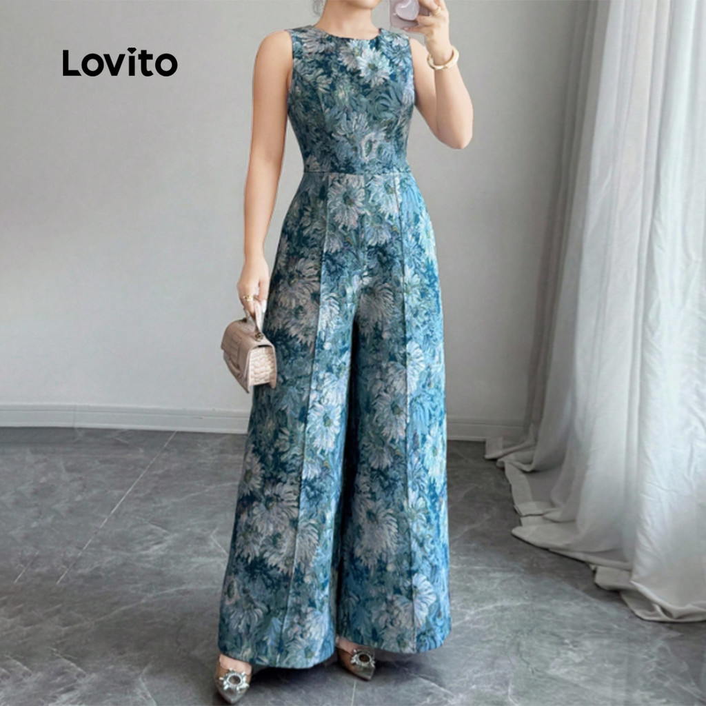 Lovito Macacão Boho com Zíper Azul para Mulheres Primavera/Verão L167ED011