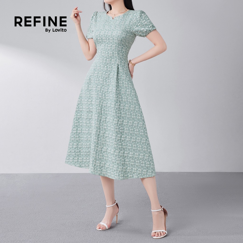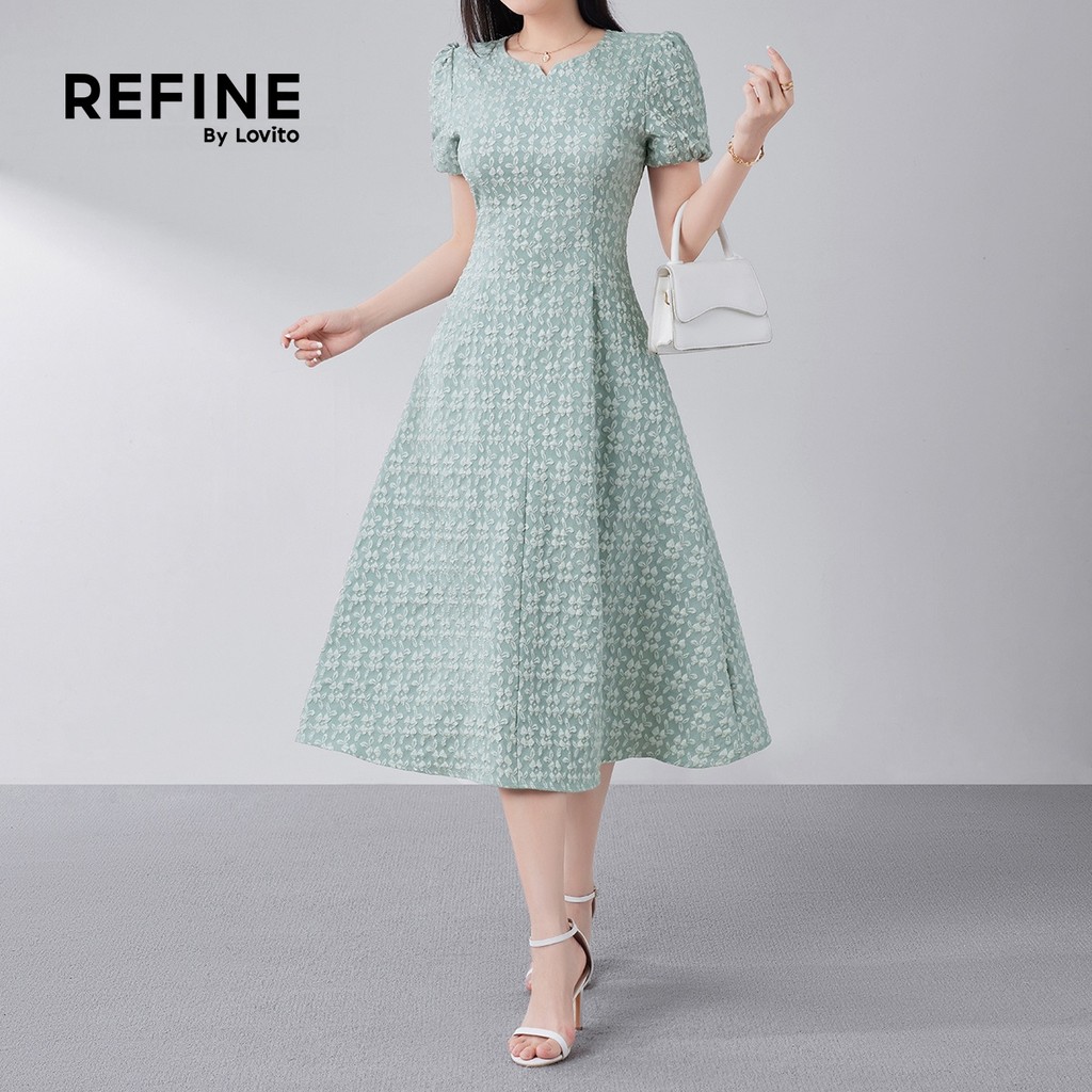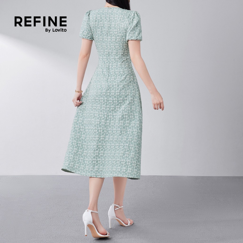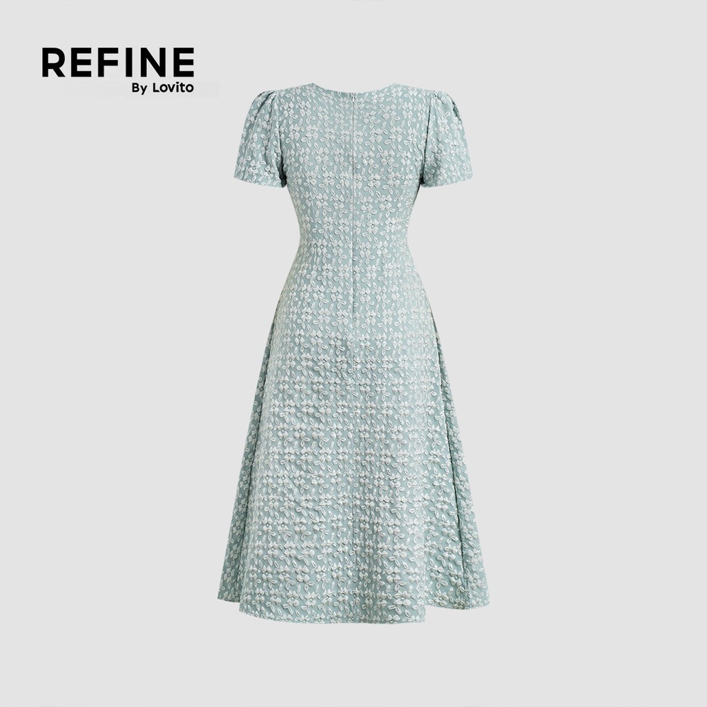 (Refine by Lovito) Vestido Boho com Pregas Plissadas para Primavera/verão Vestido Verde para mulheres LR13E055