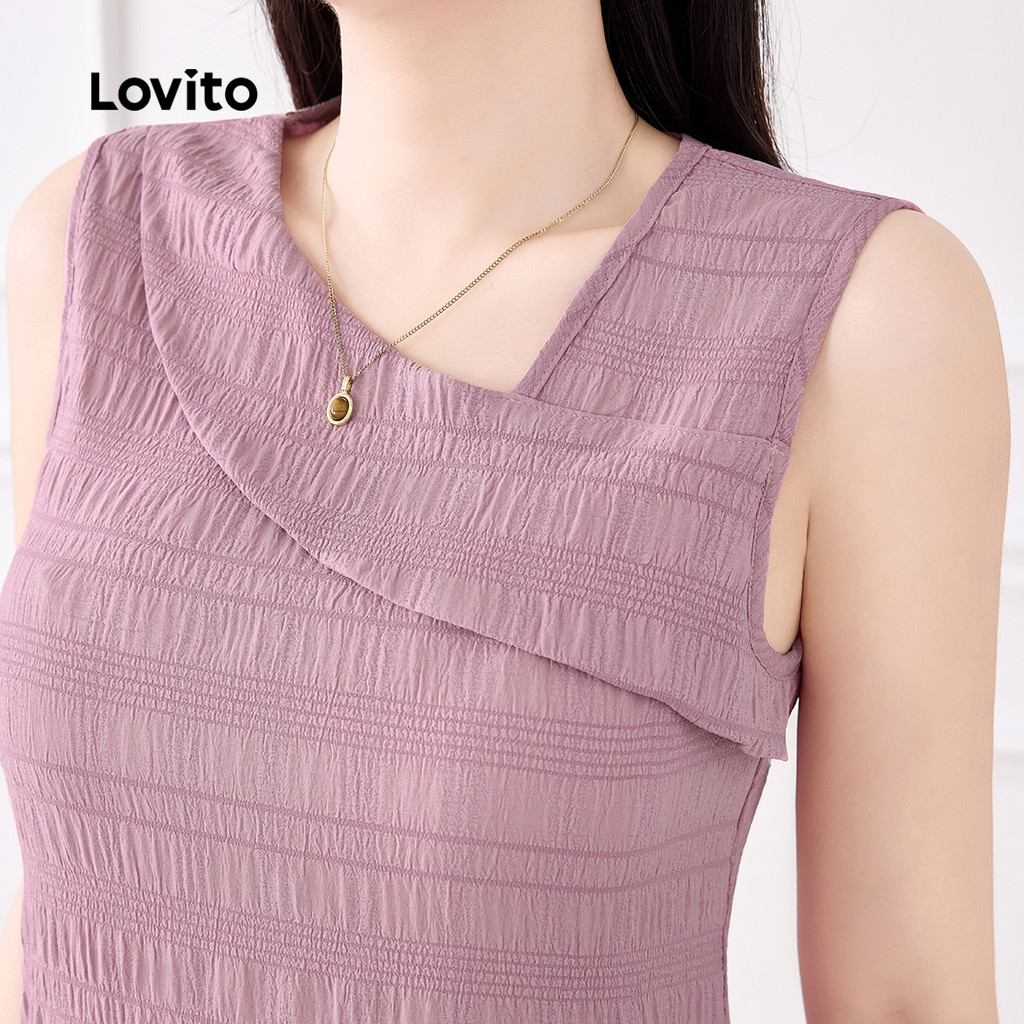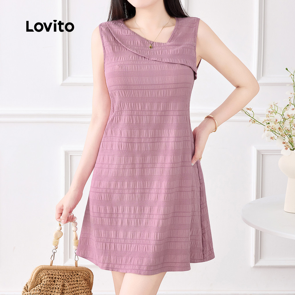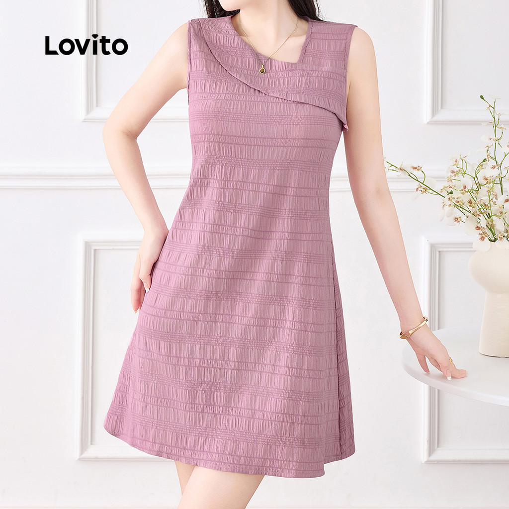 Lovito Vestido Elegante Assimétrico Simples de Primavera/verão Cinza e Rosa para Mulheres L155ED775