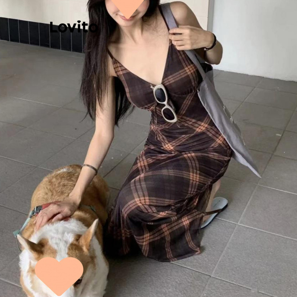 Lovito Vestido feminino Casual liso com estampa L117AD527