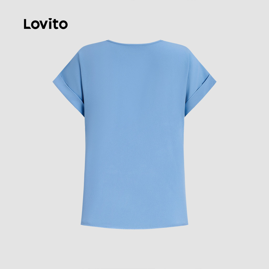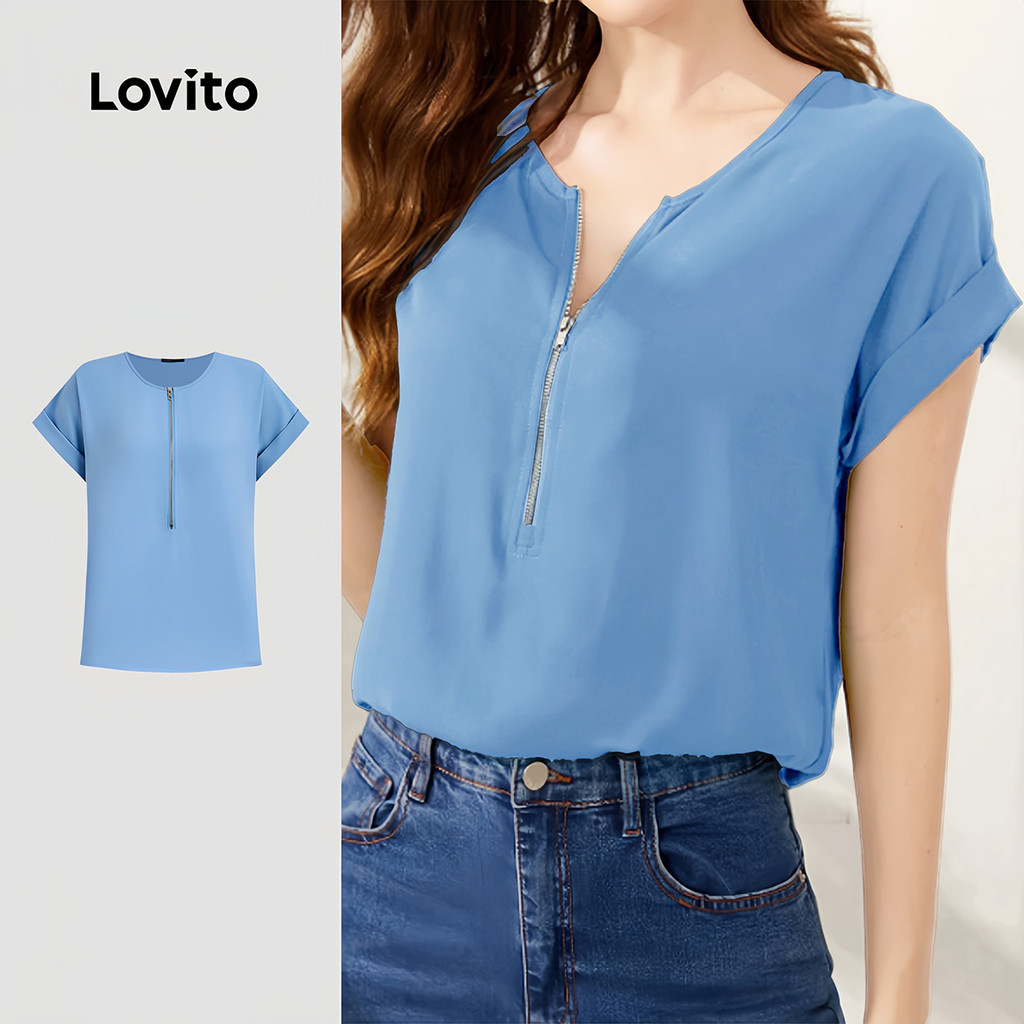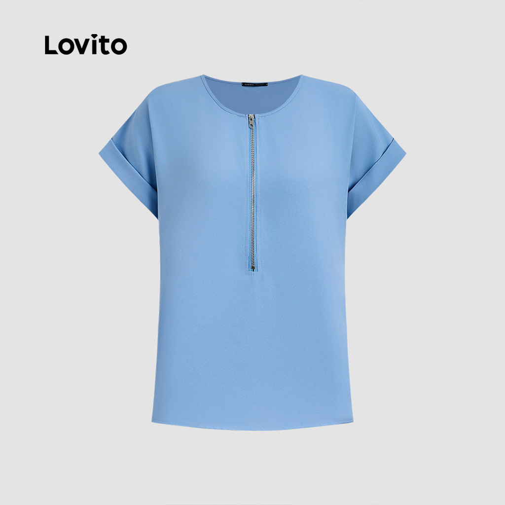 Lovito Blusa Casual com Zíper Primavera/verão Blusa Azul para Mulheres L171ED018