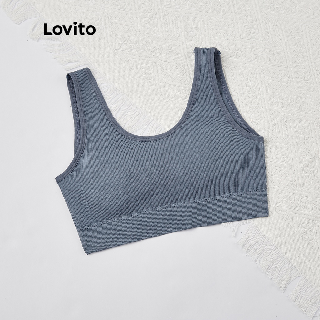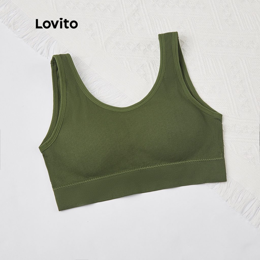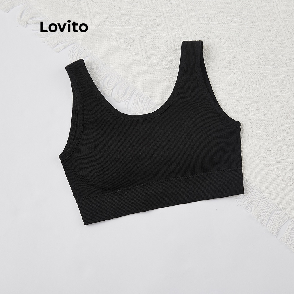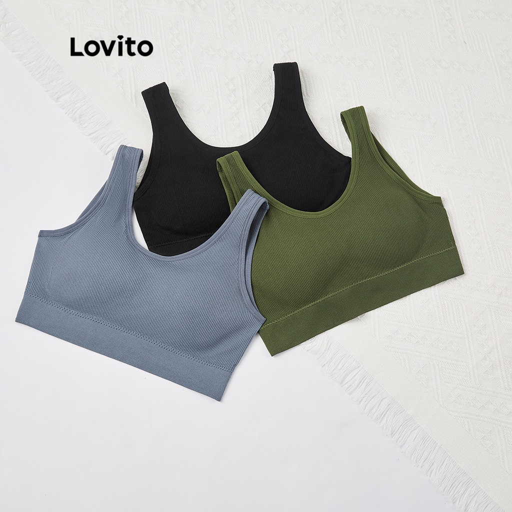 (Trendy) Lovito Sutiã Casual Liso Sem Fio Almofadas Removíveis L23LD072 (Preto/Azul/Verde)
