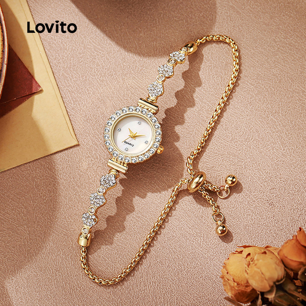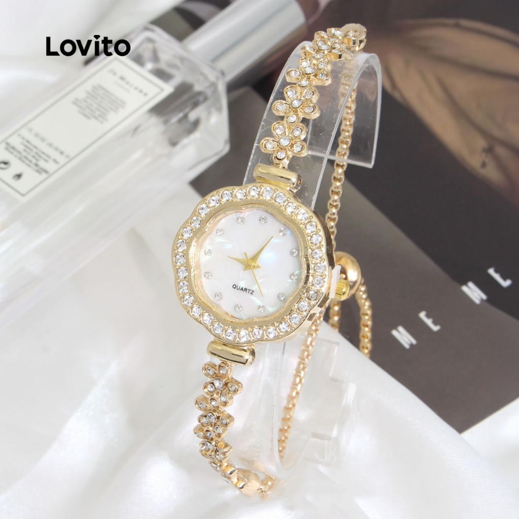 (Trendy) Lovito Casual Simples Brilhantes Todas As Estações Relógio De Quartzo Para Mulher LFA82340