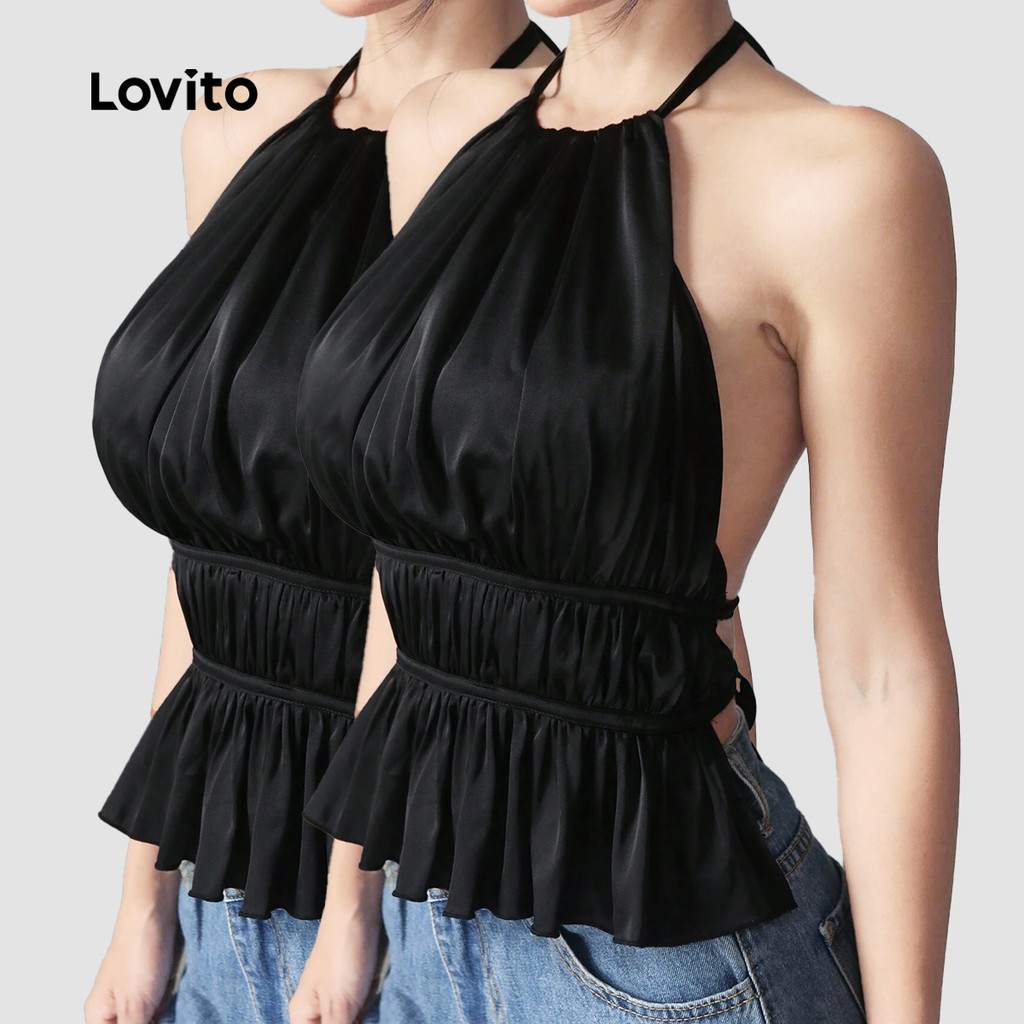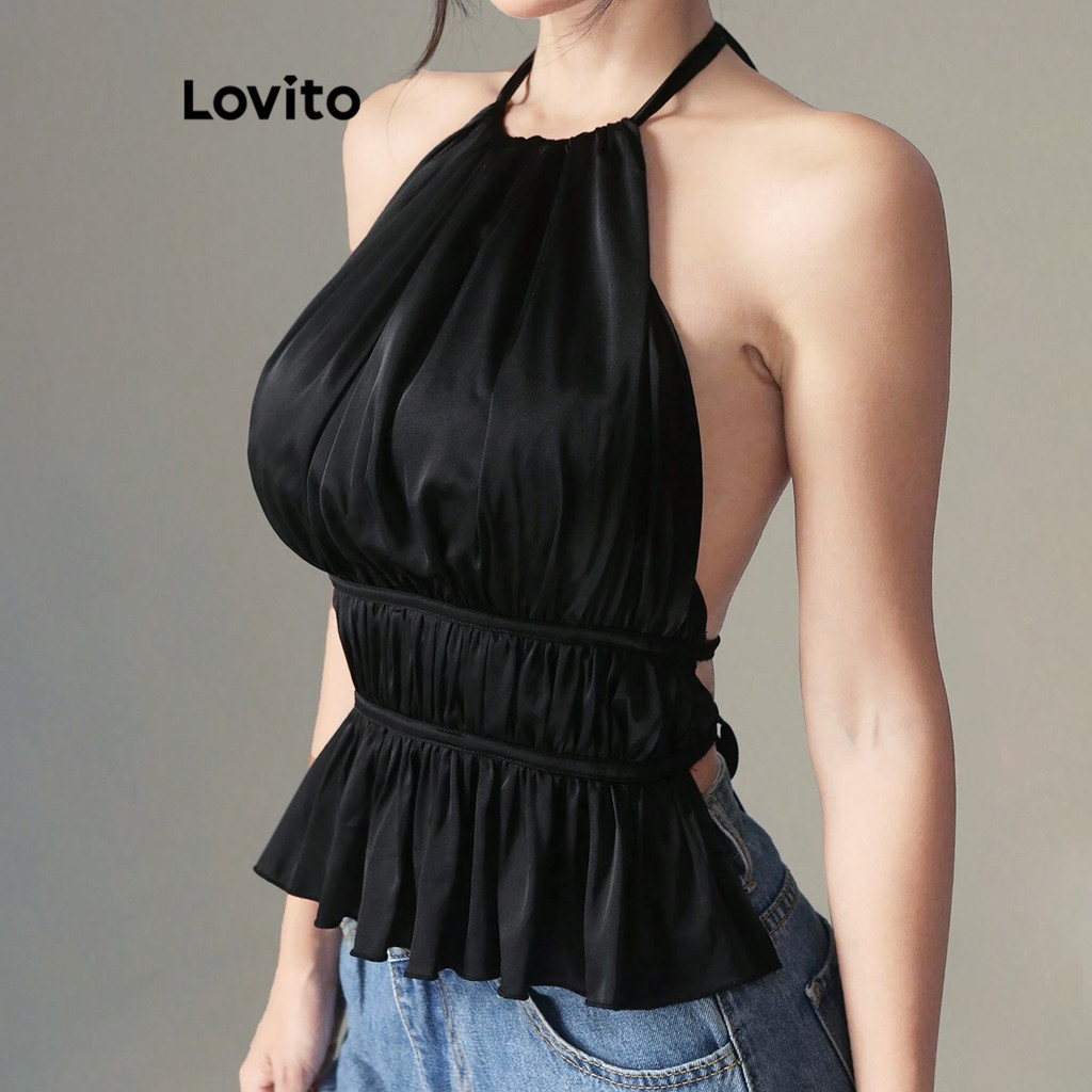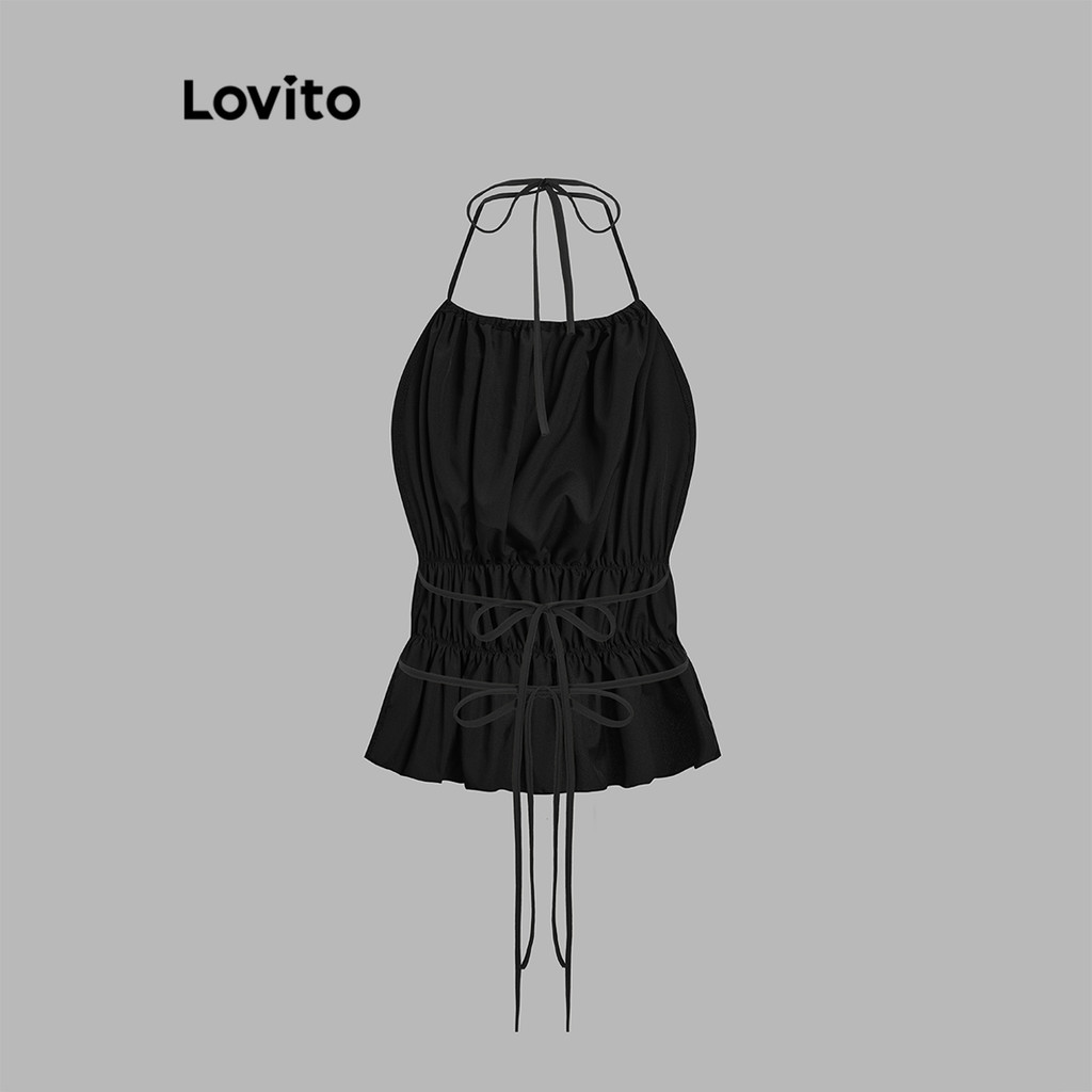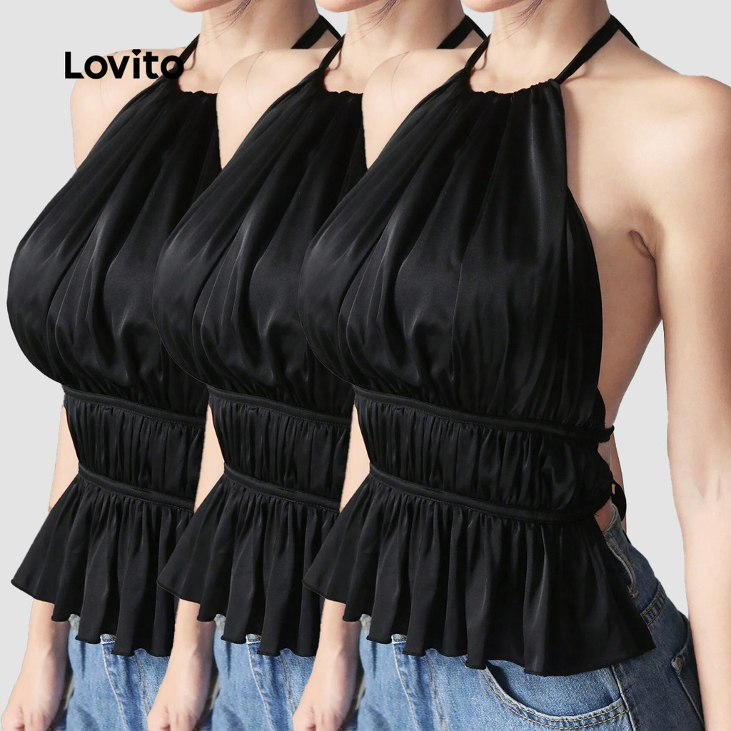 (Trendy2) Lovito Regata Elegante Com Renda Lisa E Franzida Para Mulheres L106AD087