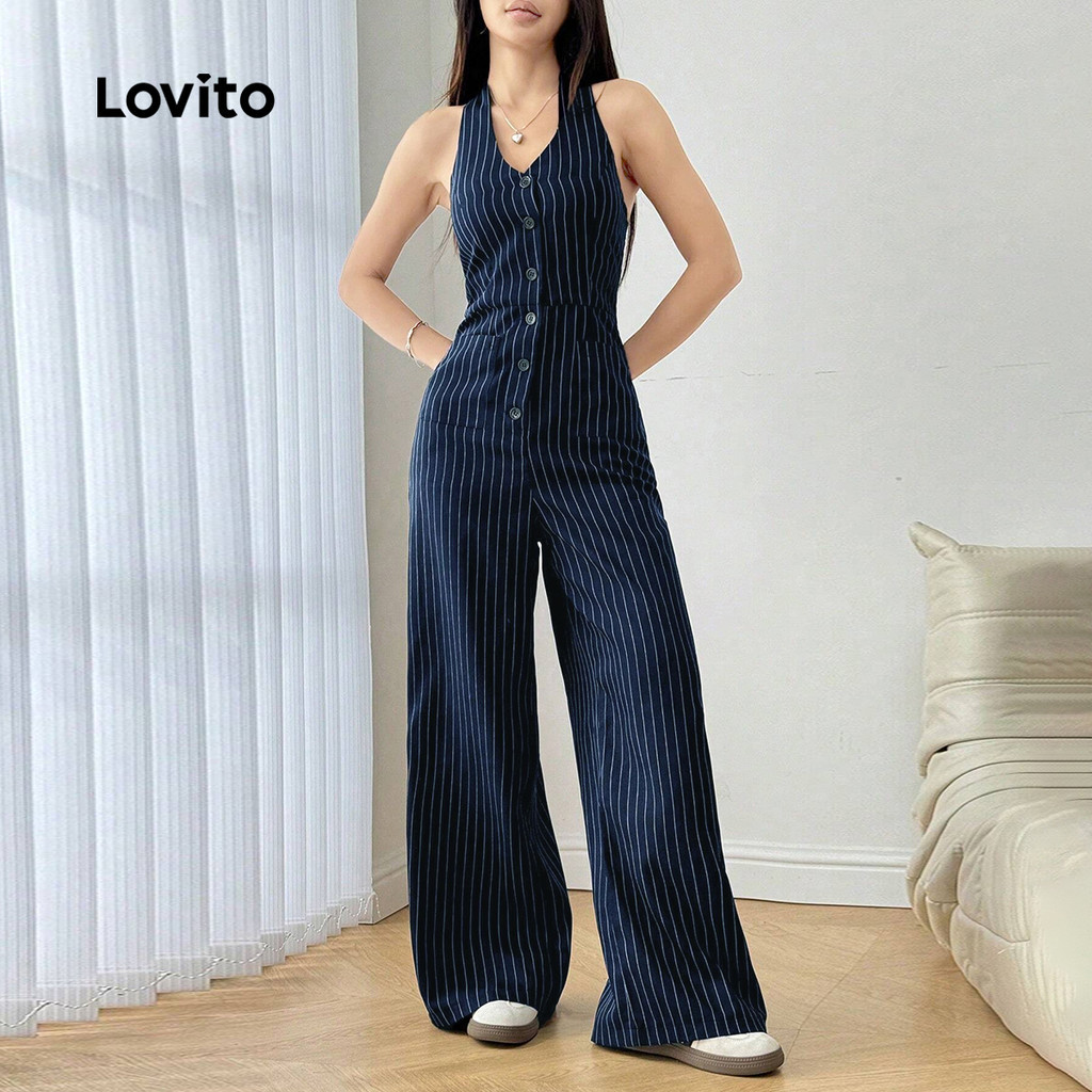 Lovito Macacão Elegante com Botões Primavera/verão Macacão Azul para mulheres L154LD157