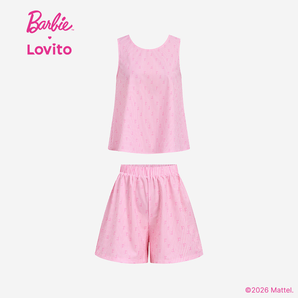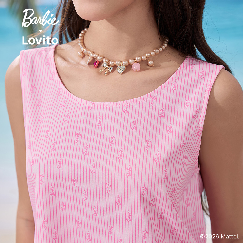 Barbie™ X Lovito Tops ou Bottoms Casuais Primavera/verão Top Rosa Tops ou Bottoms para Mulheres LB1AD047