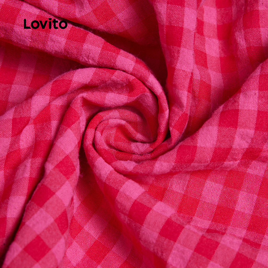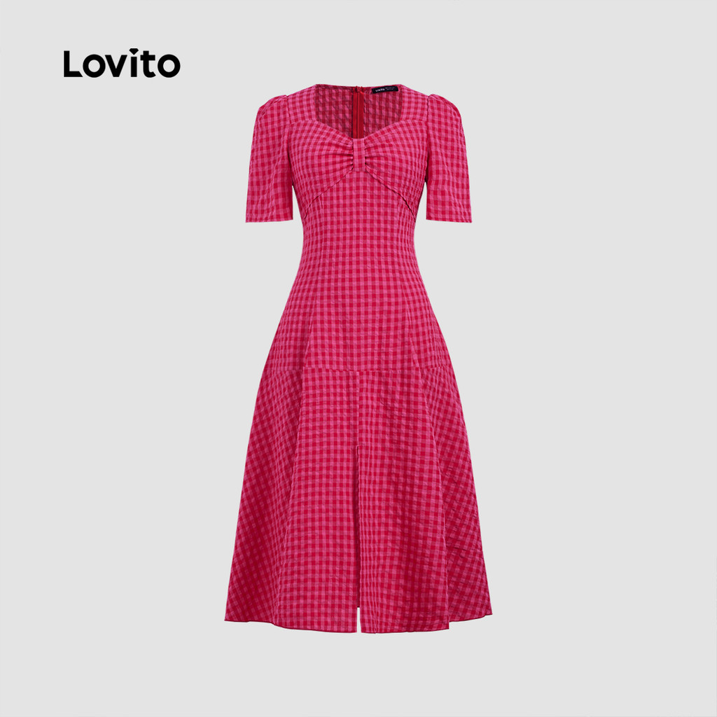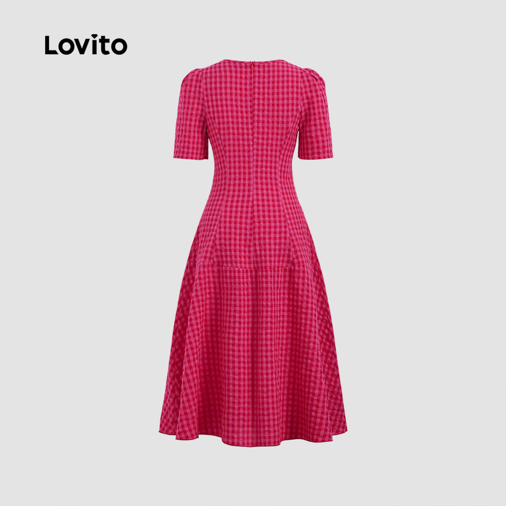 (Trendy) Lovito Vestido Elegante Xadrez Franzido Para Mulheres LBL24201