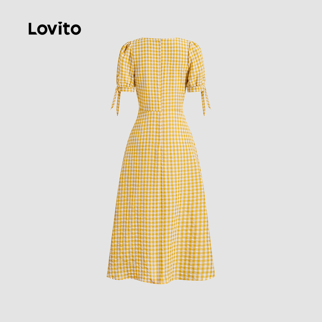 Lovito Vestido Boho de Renda com Zíper de Primavera/verão Vestido Amarelo para mulheres L142ED119