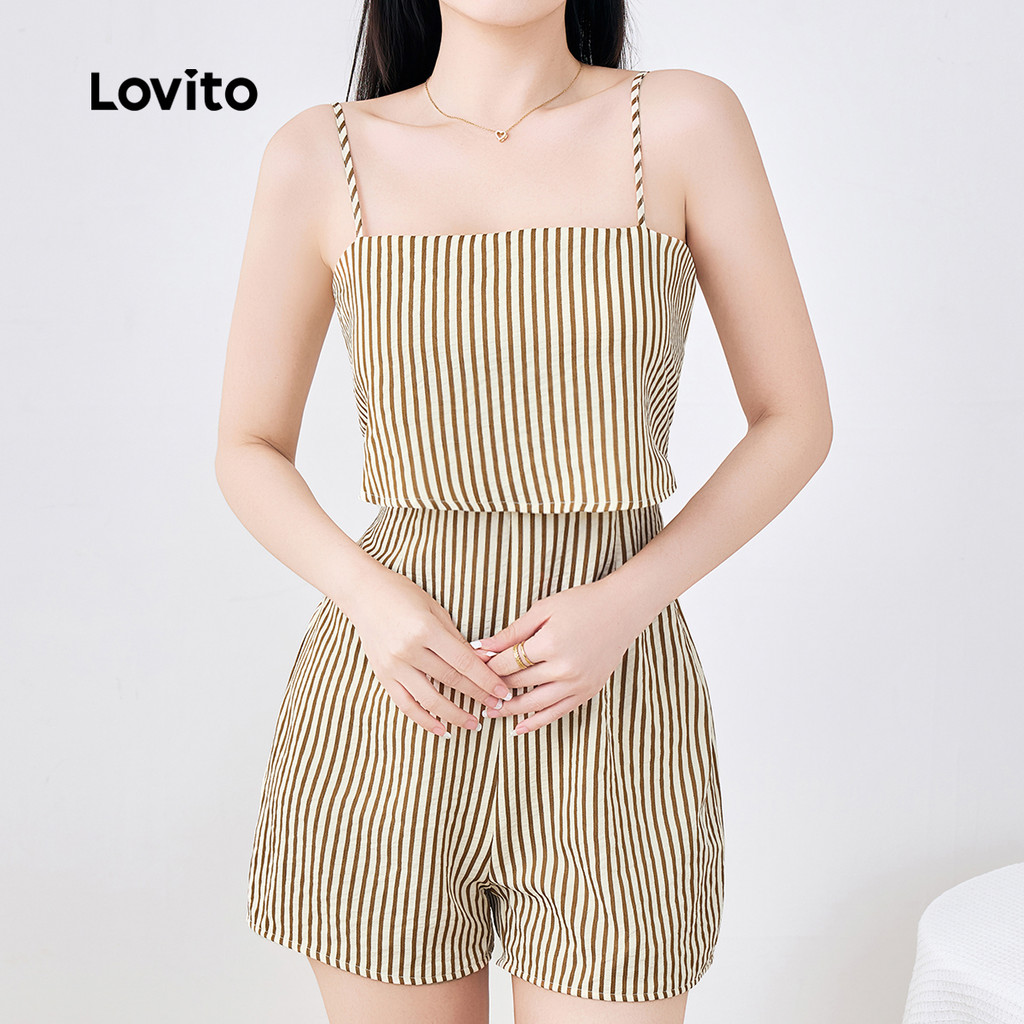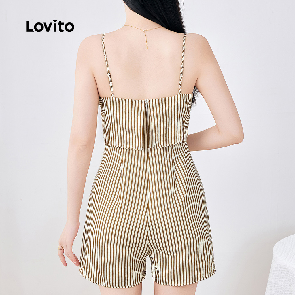 (New) Lovito Macacão Boho com Zíper Primavera/verão Marrom para Mulheres L142ED148