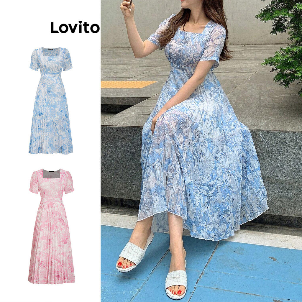 Lovito Refine Vestido Boho Floral Com Babados E Camadas Duplas Para Mulheres L83EN384