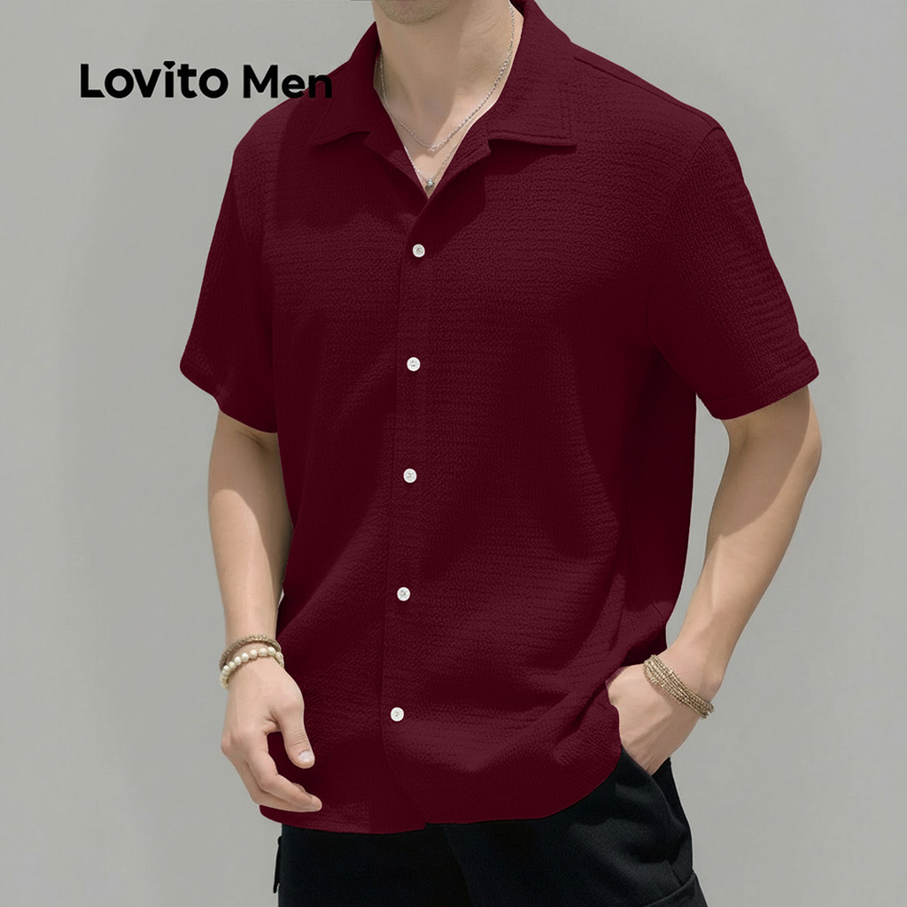 Lovito Men Camisa Casual de Botão com Frisos para Primavera/verão Cor Cáqui Claro para homens LNE118080