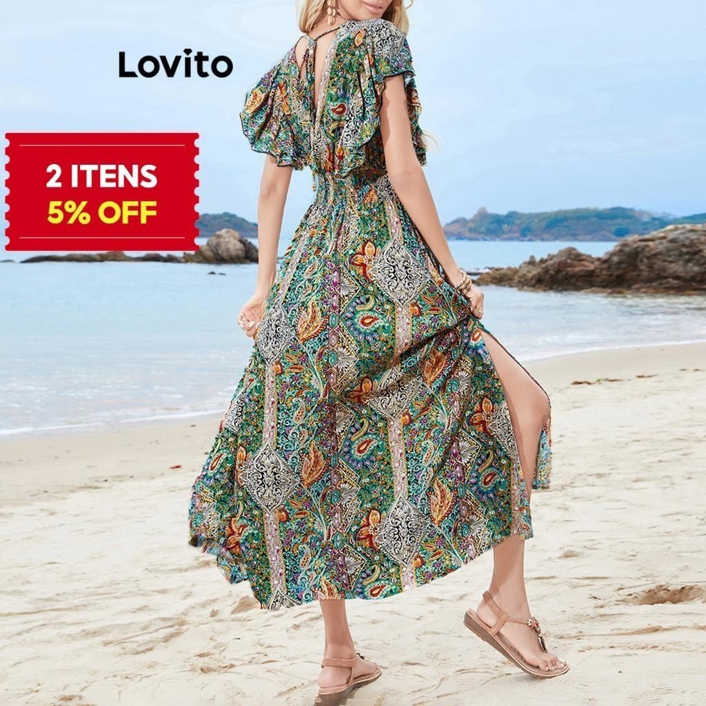 (KOL‘s pick) Lovito Vestido Casual Ditsy Floral Padrão Vestido Para Mulheres LNE70094
