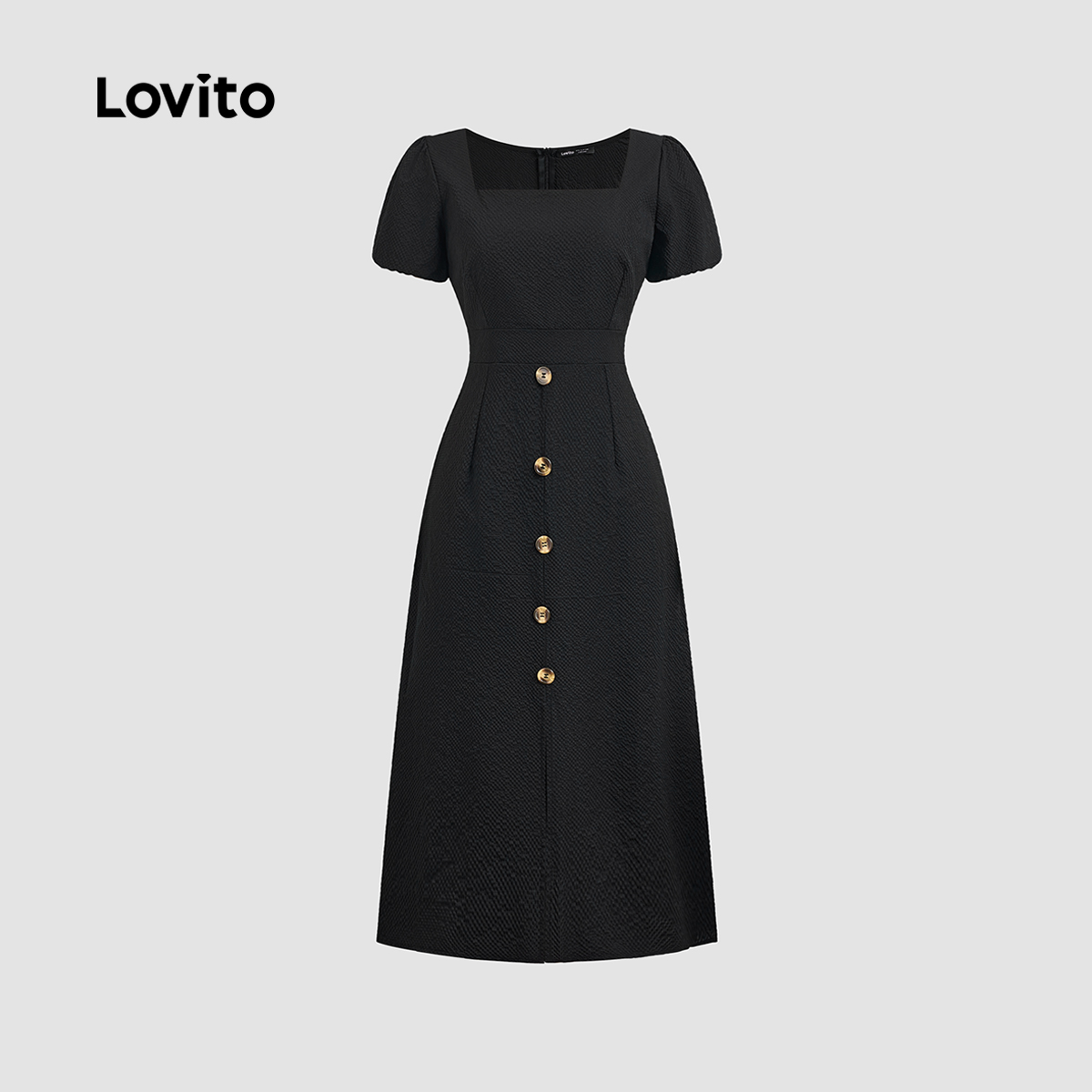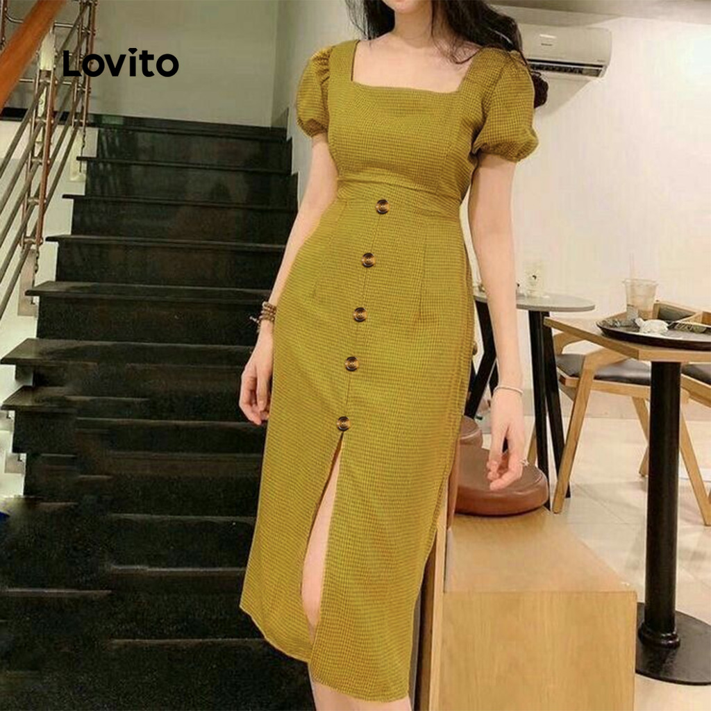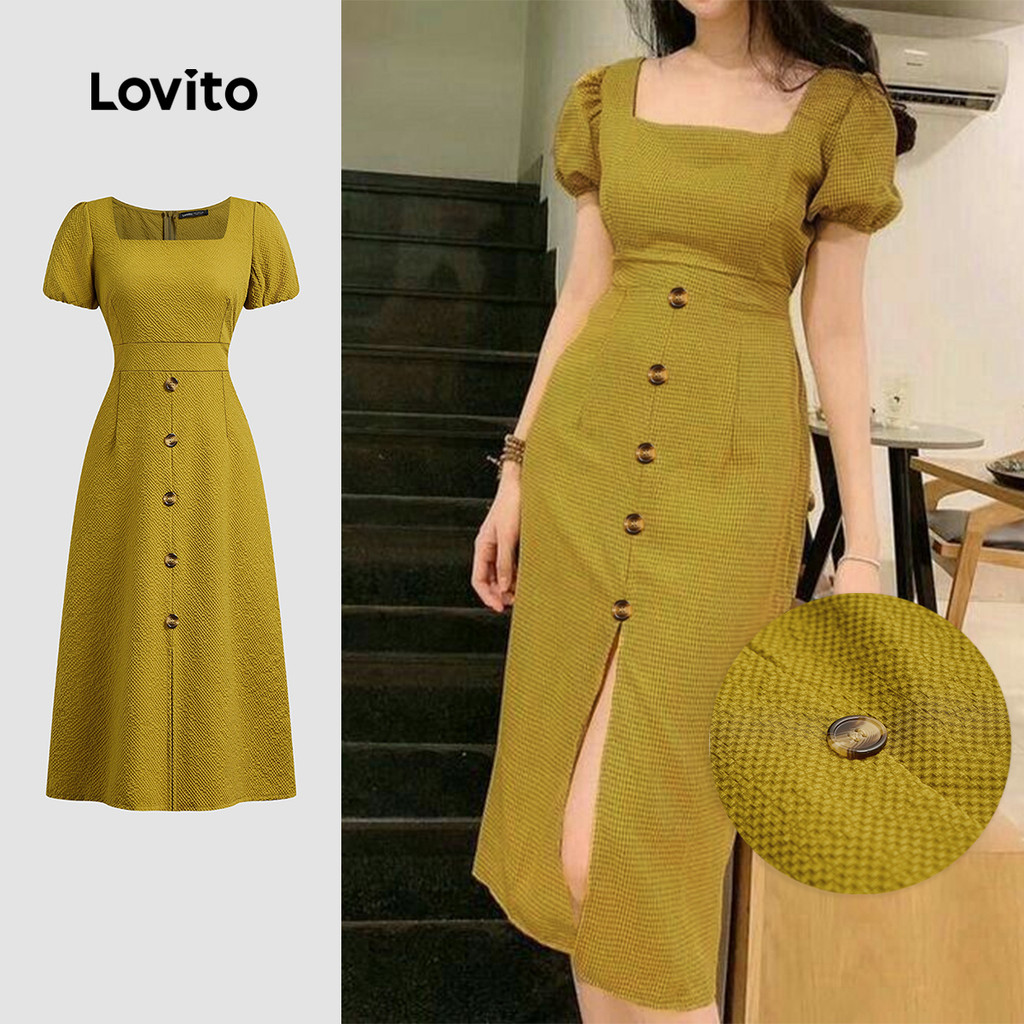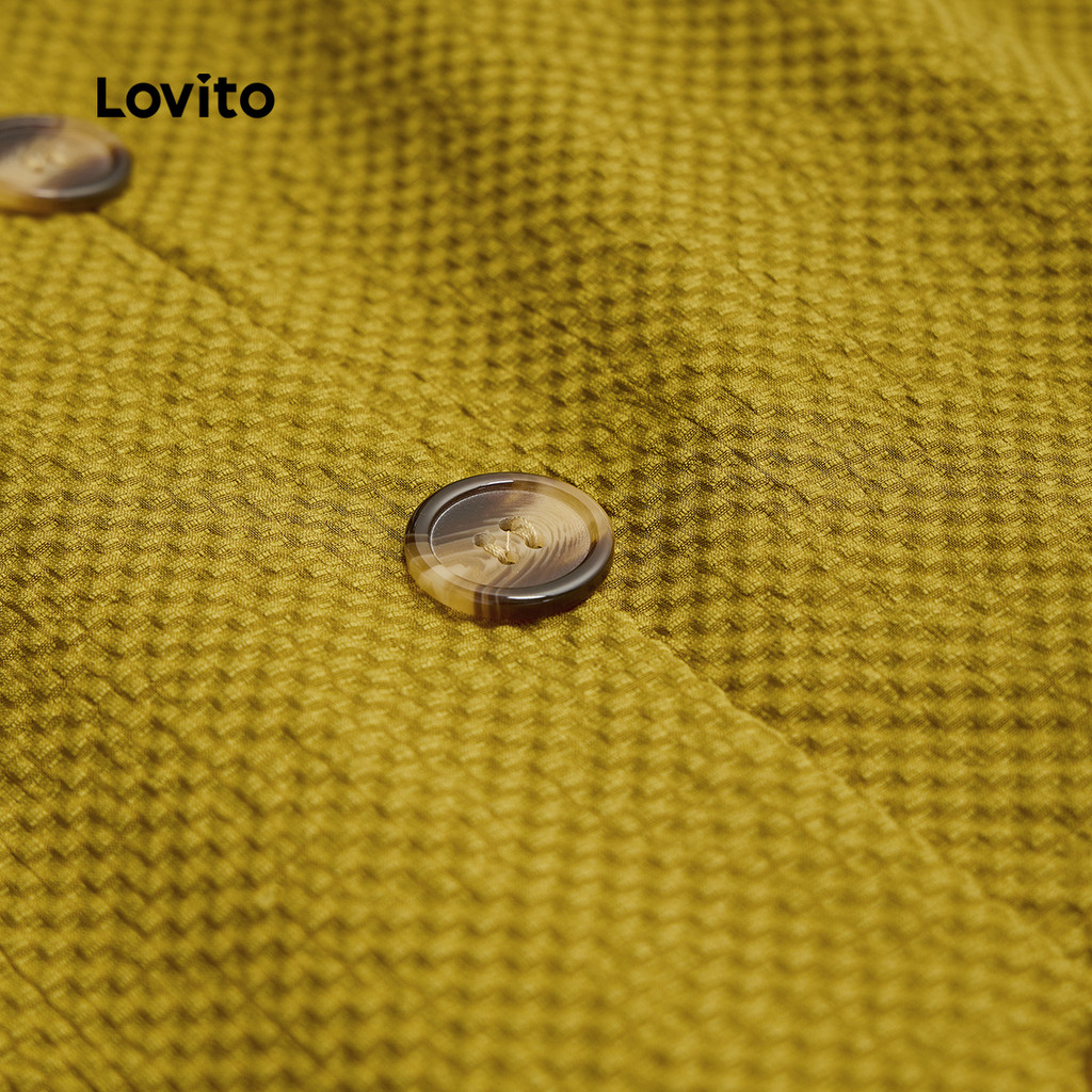 Lovito Vestido Casual Botão Primavera/Verão Vestido Amarelo Para Mulheres L134ED162