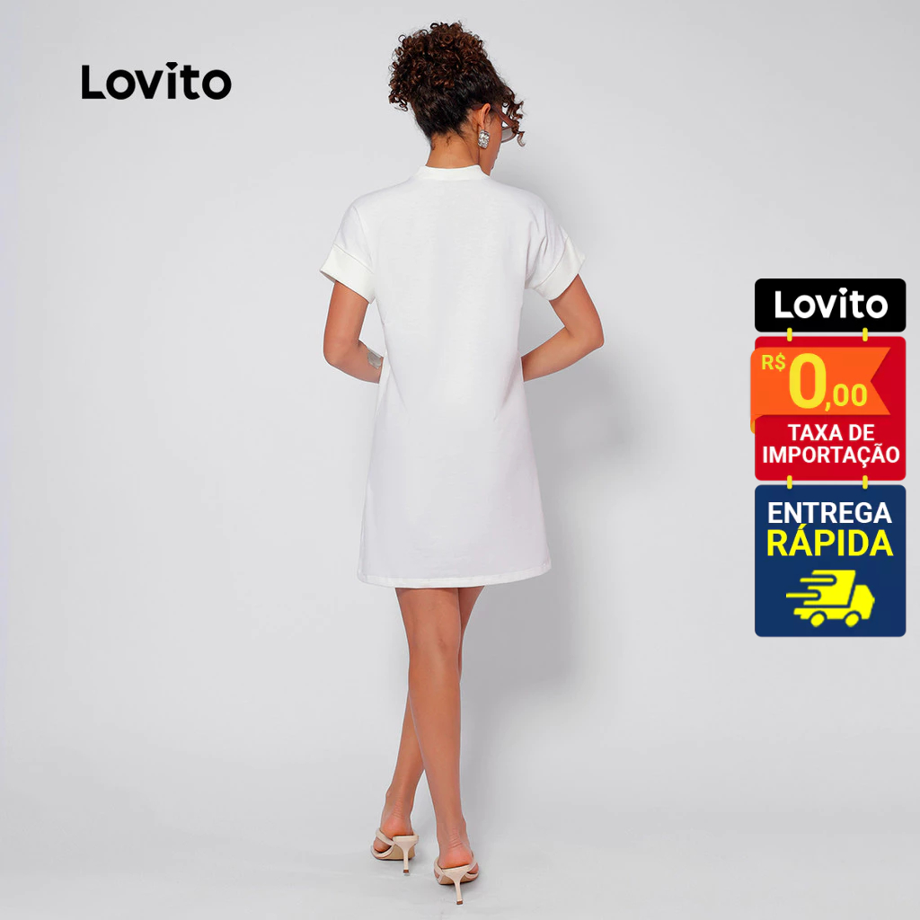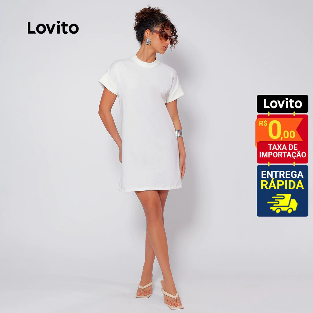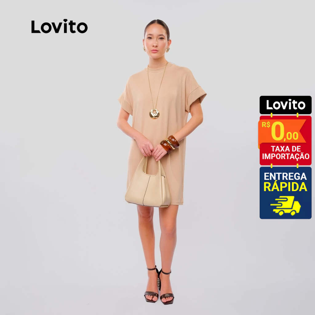 Lovito Vestido Camisetao Manga Curta Elegante Basico Casual Liso Feminino LB897BRL927