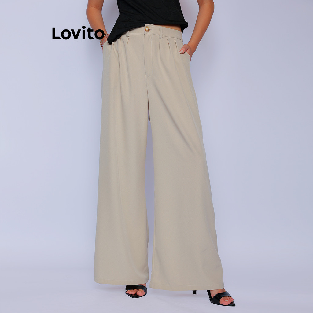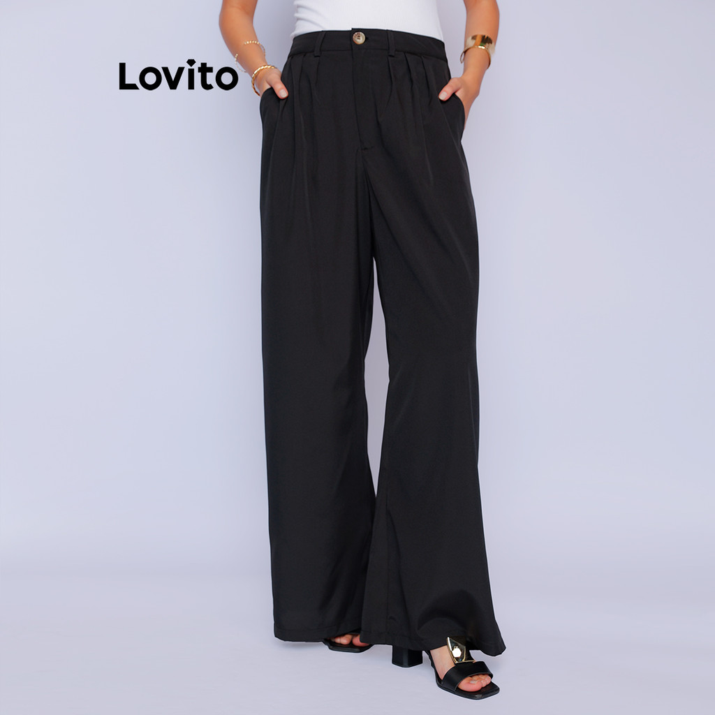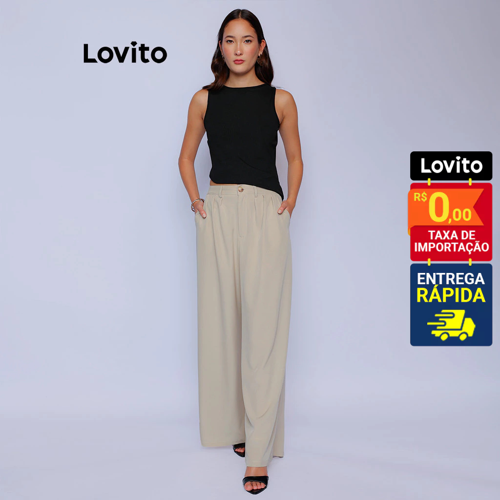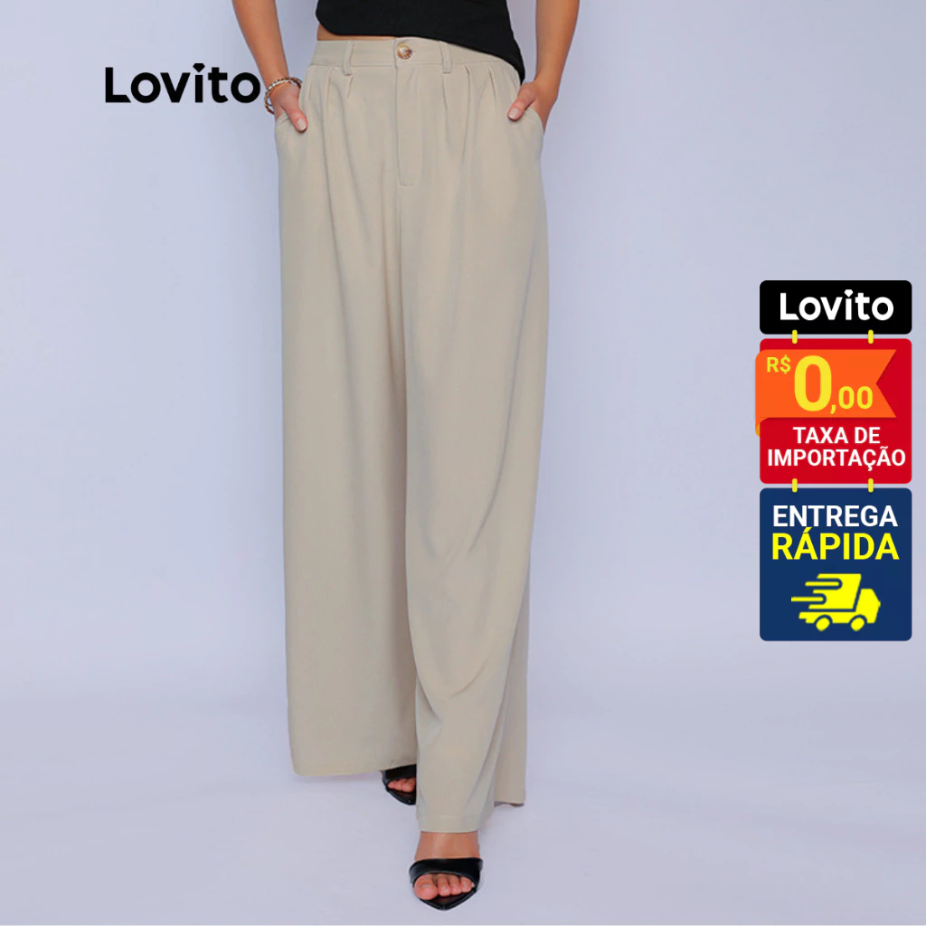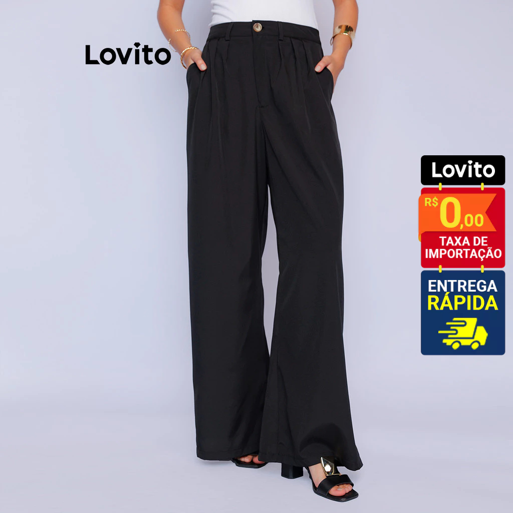 Lovito Calça Reta Cintura Alta Alfaiataria | Social Tecido Premium Versátil Trabalho LB1053BRL1083