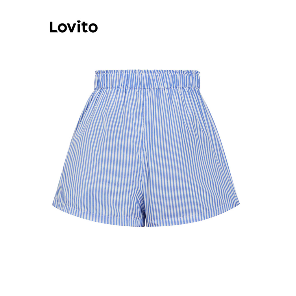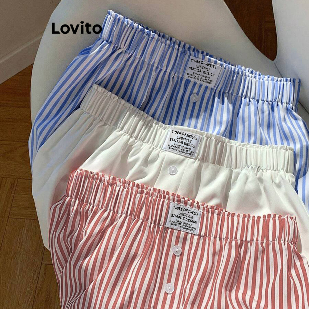 (Trendy) Lovito Casual Curto Listrado Botão Básico Verão/Primavera Curto Para Mulheres L105MD129