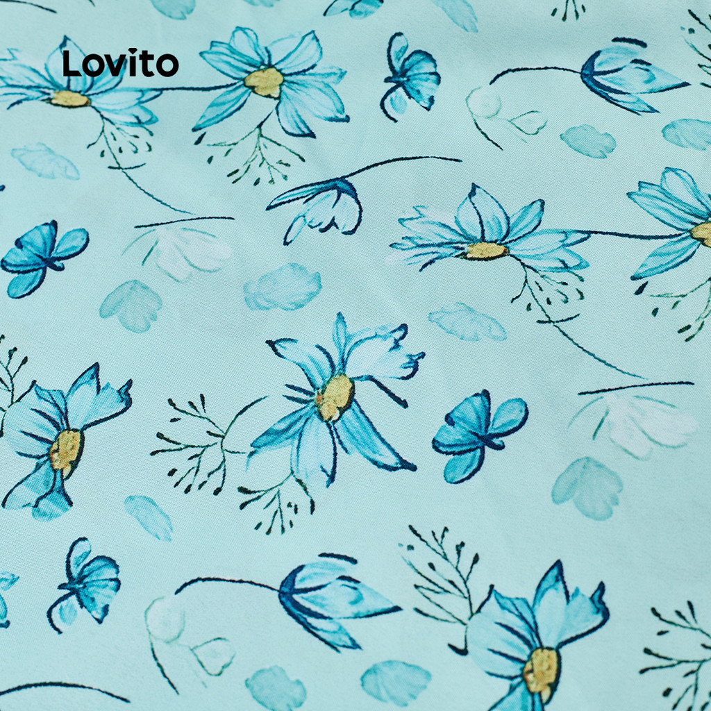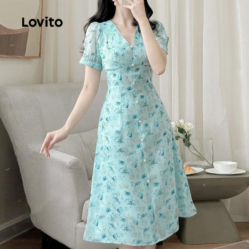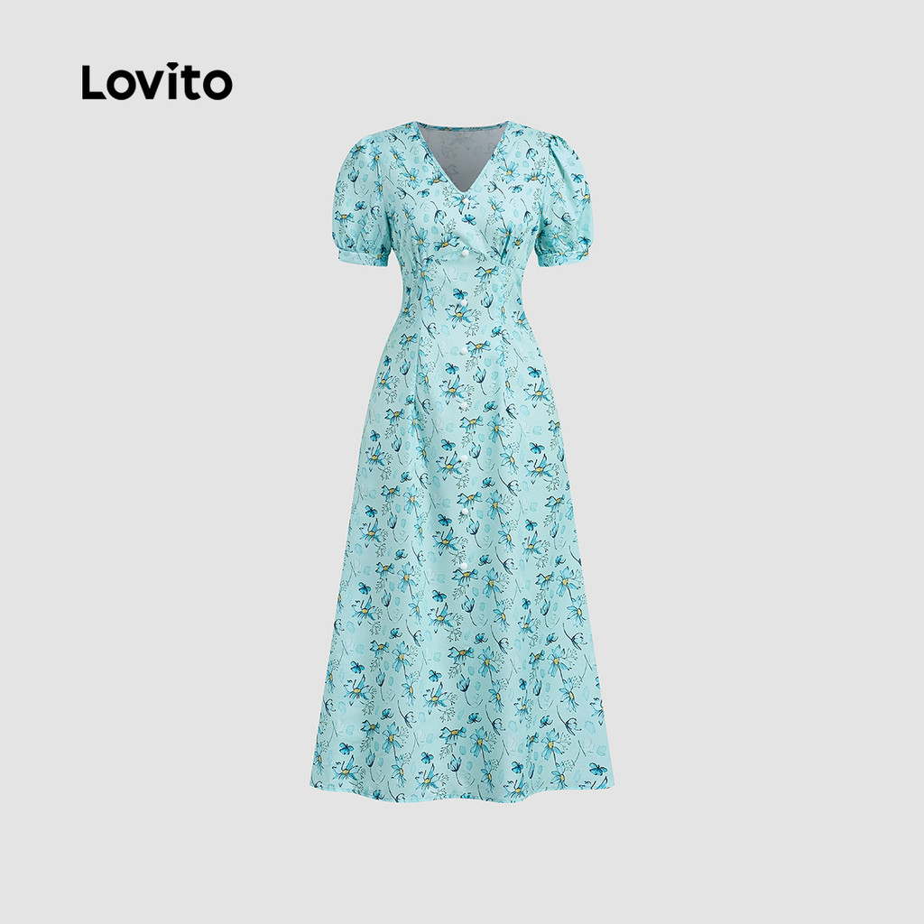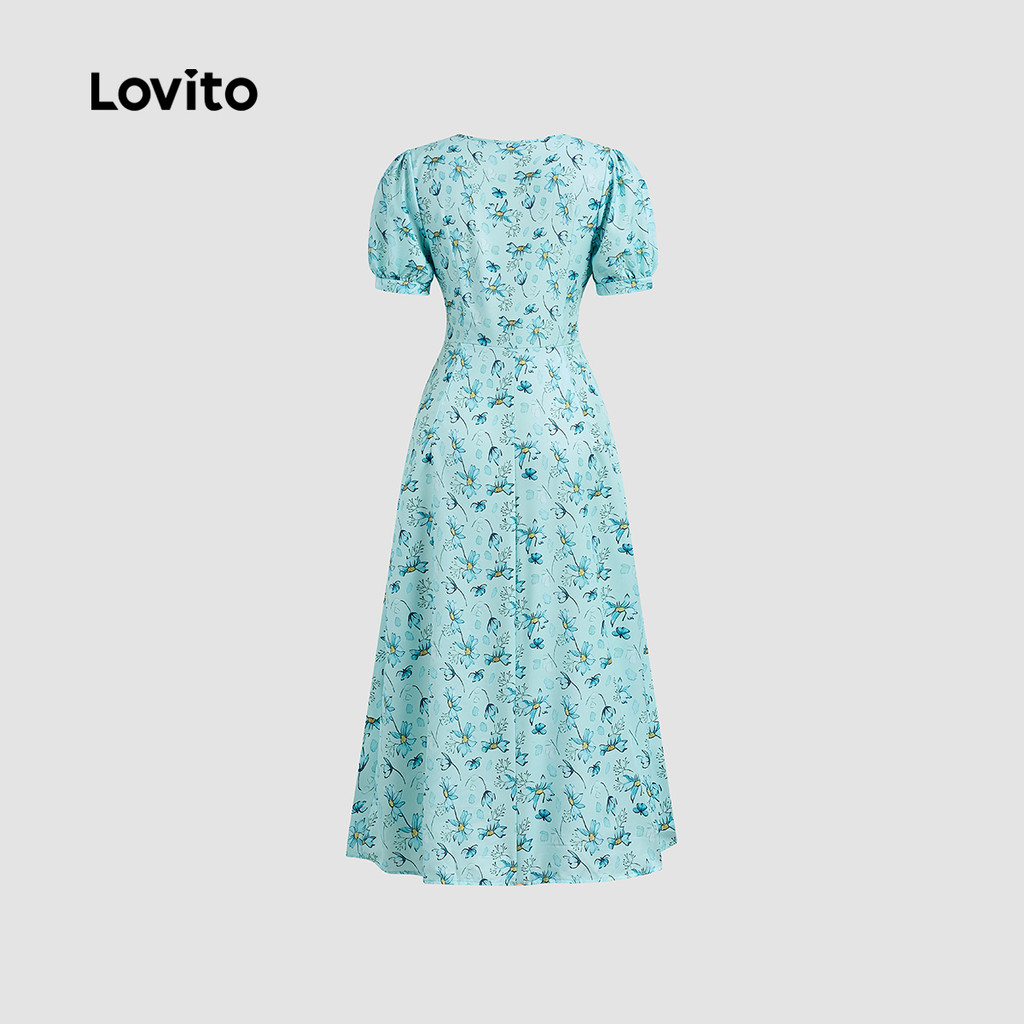 (New) Lovito Vestido Elegante com Botões Na Frente Primavera/verão Vestido Azul para mulheres L142LD592