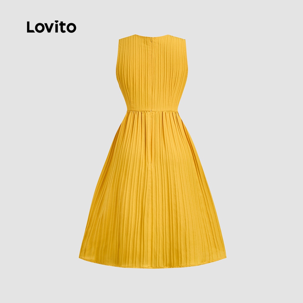 Lovito Vestido Casual de Estrutura Plenada para Primavera/verão Amarelo para mulheres L150ED139