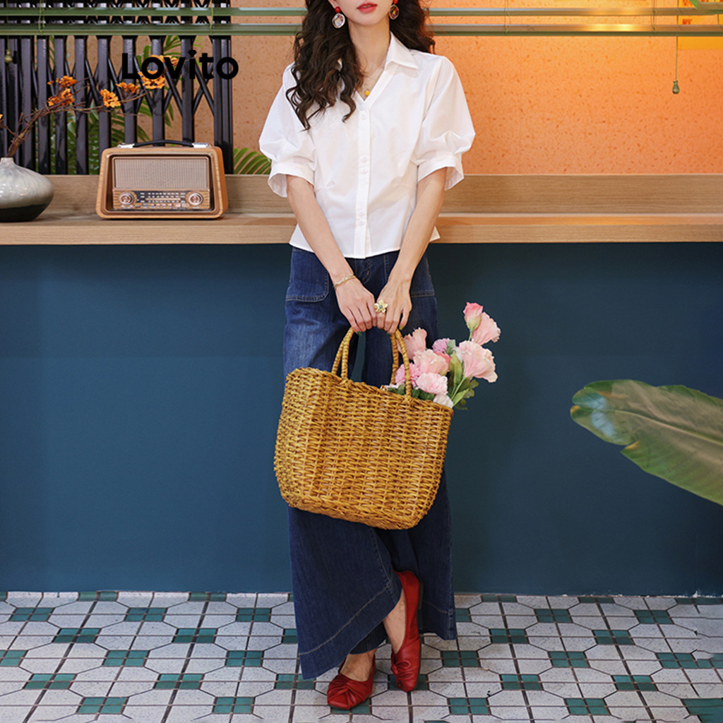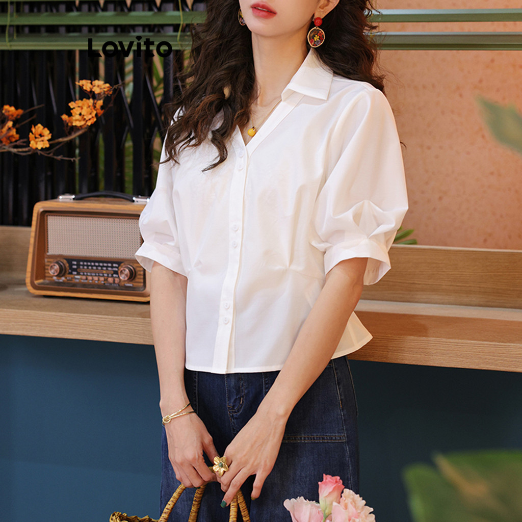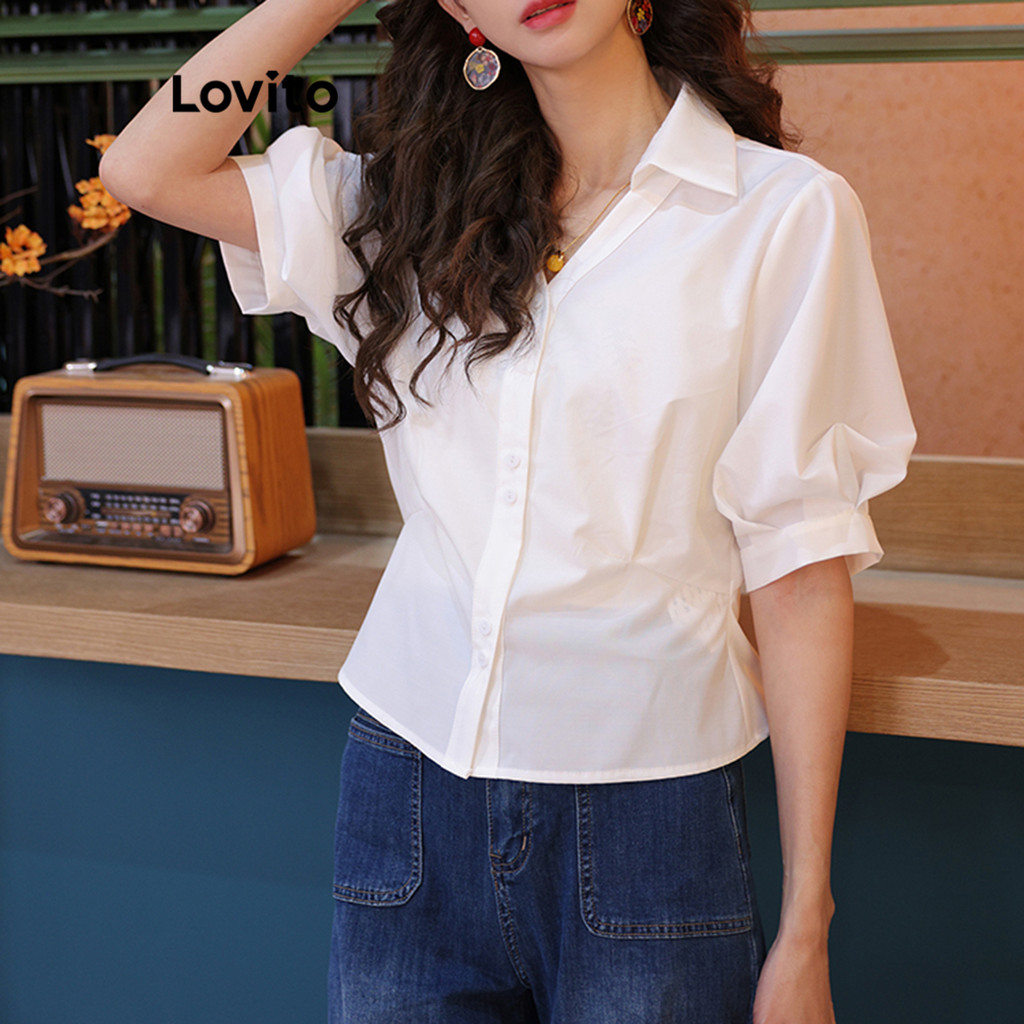 Lovito Blusa Feminina Casual Lisa Plissada - LNE73710