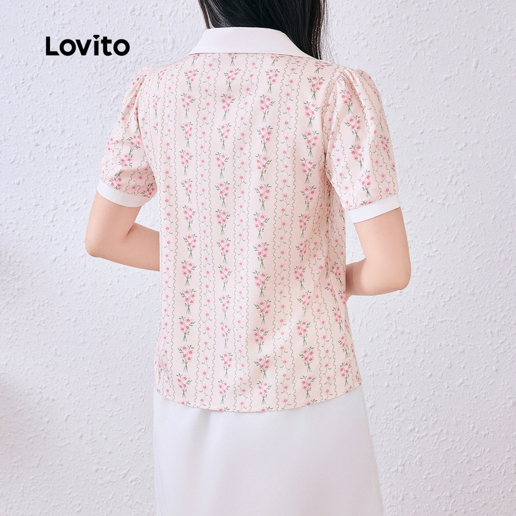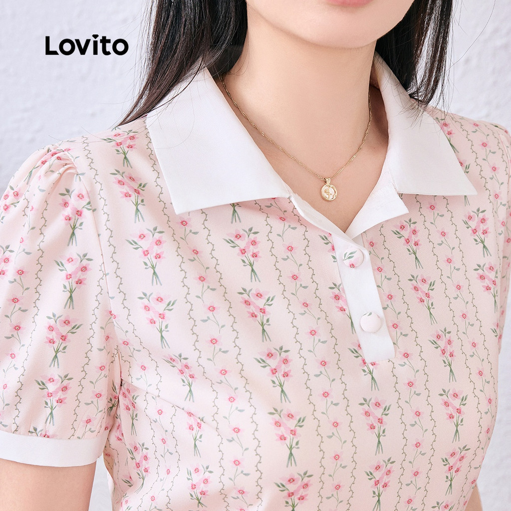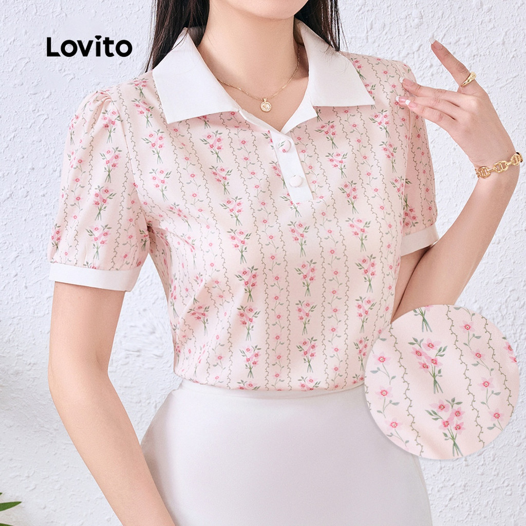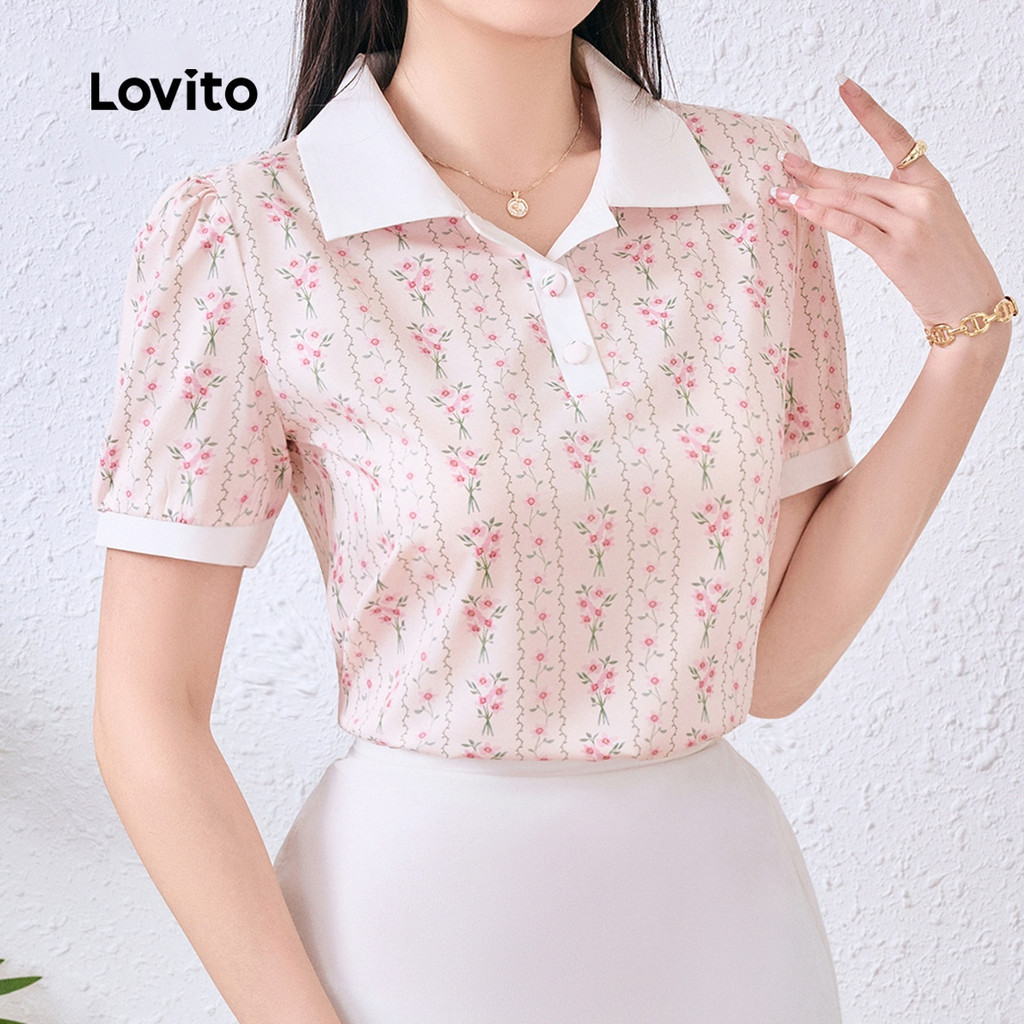 Lovito Blusa Elegante com Botão Bloco de Cores Macia e Confortável Blusa de primavera/verão L137ED688