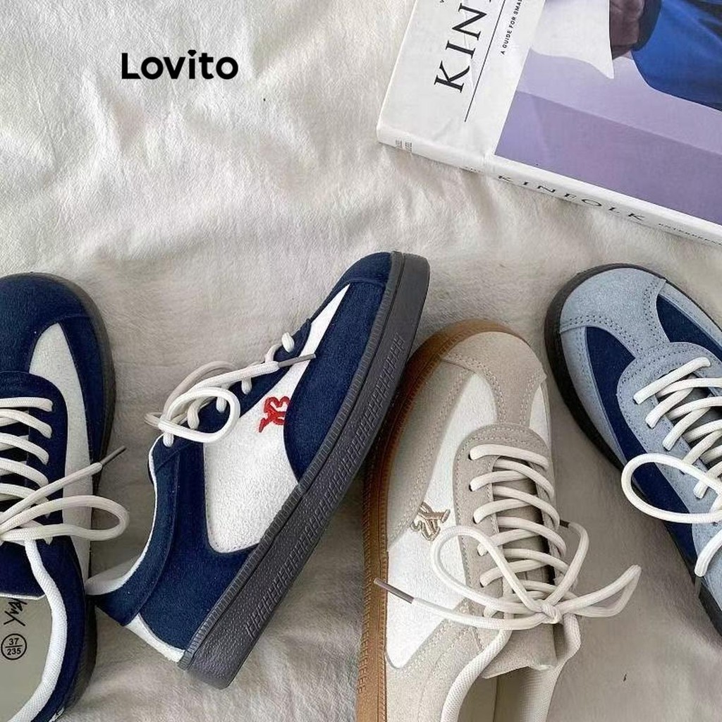 (Trendy) Lovito Casual liso Colorblock versão coreana versátil fundo macio leve tênis confortável para mulheres LFA73297