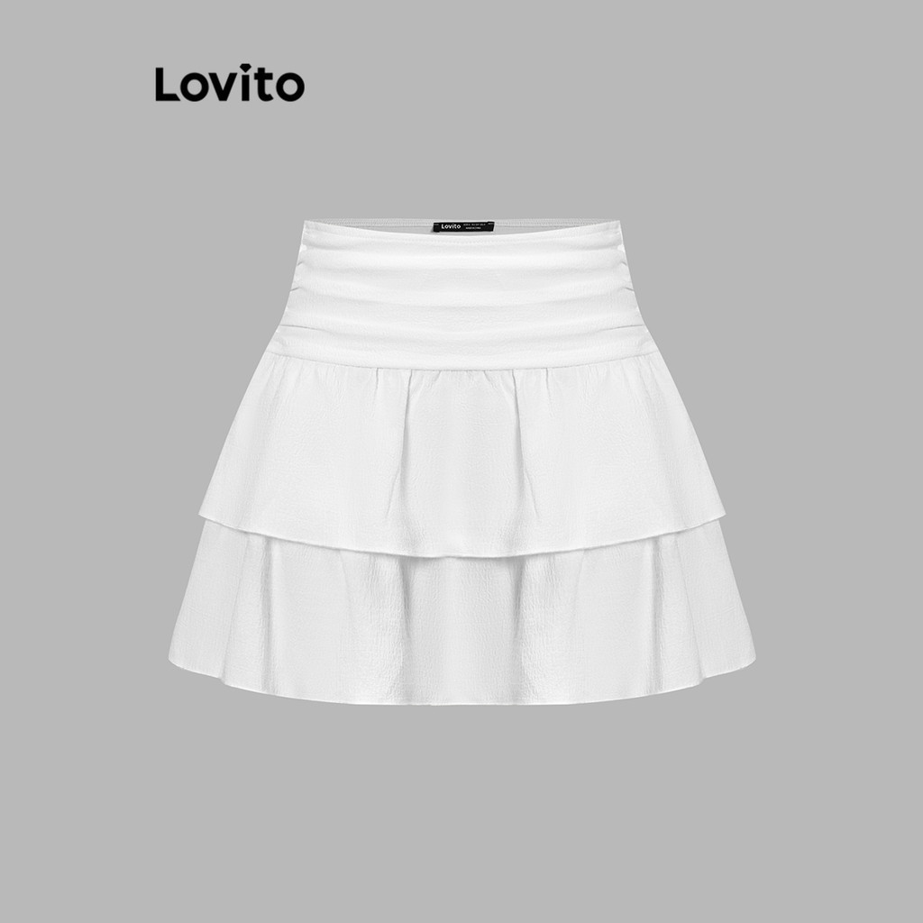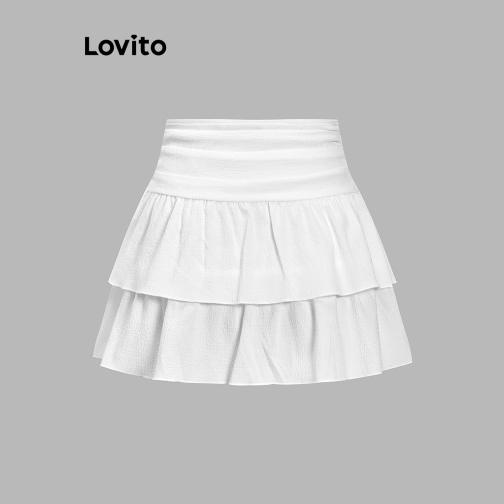 (Trendy) Lovito Saia plissada em camadas lisas e fofas para mulheres L106AD530