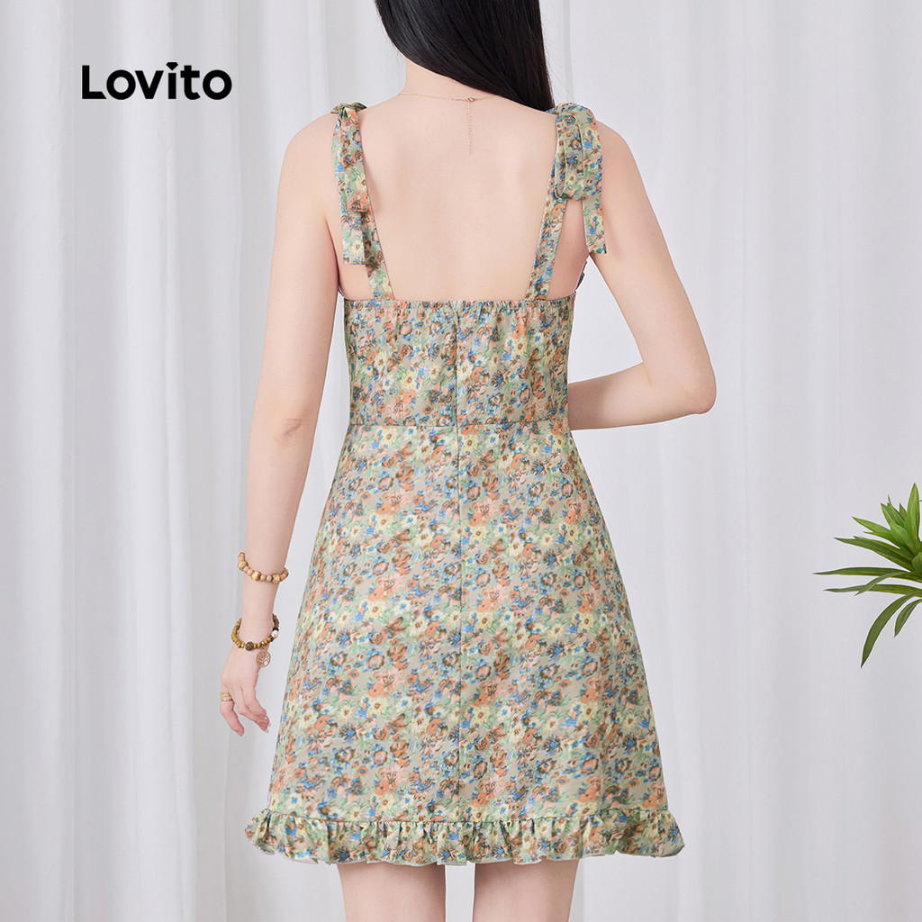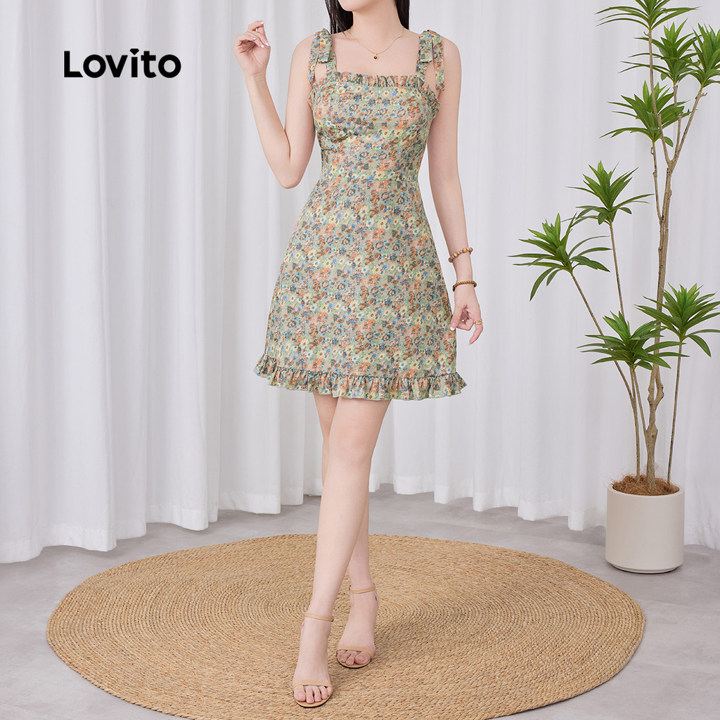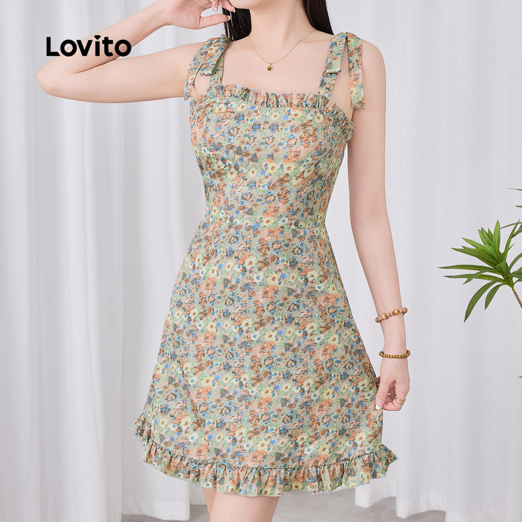 Lovito Vestido Boho com Acabamento de Alface Zíper Primavera/verão para mulheres L142ED269