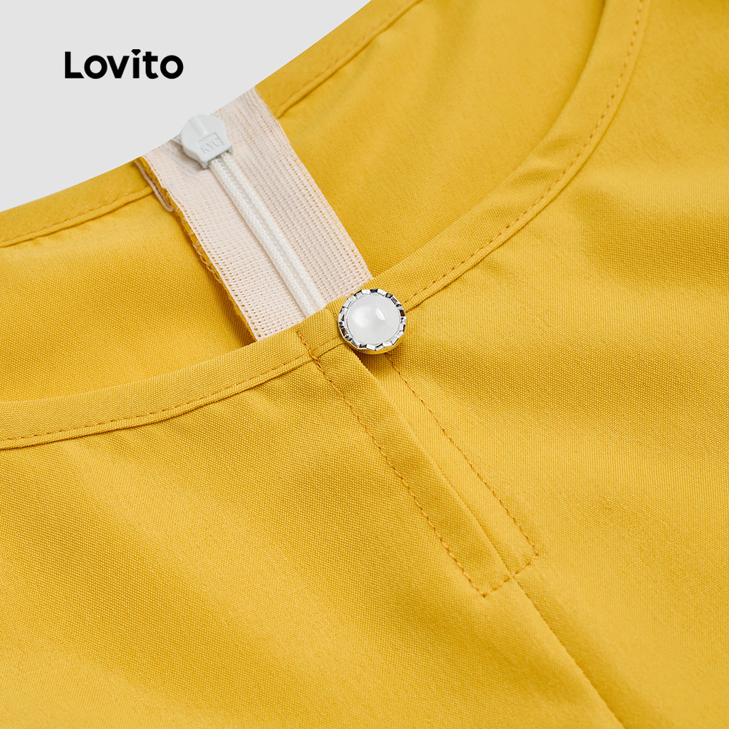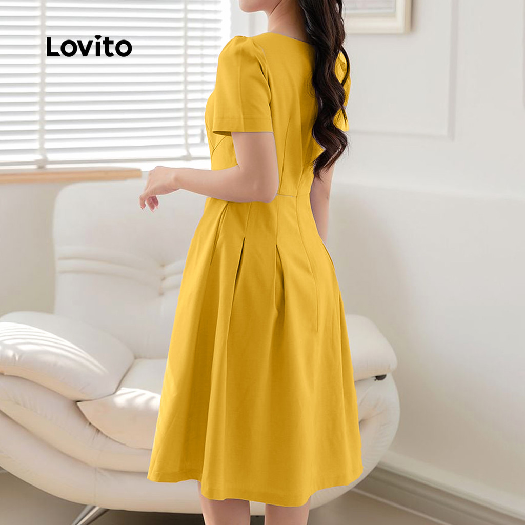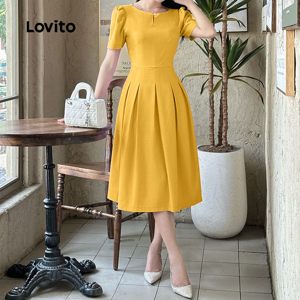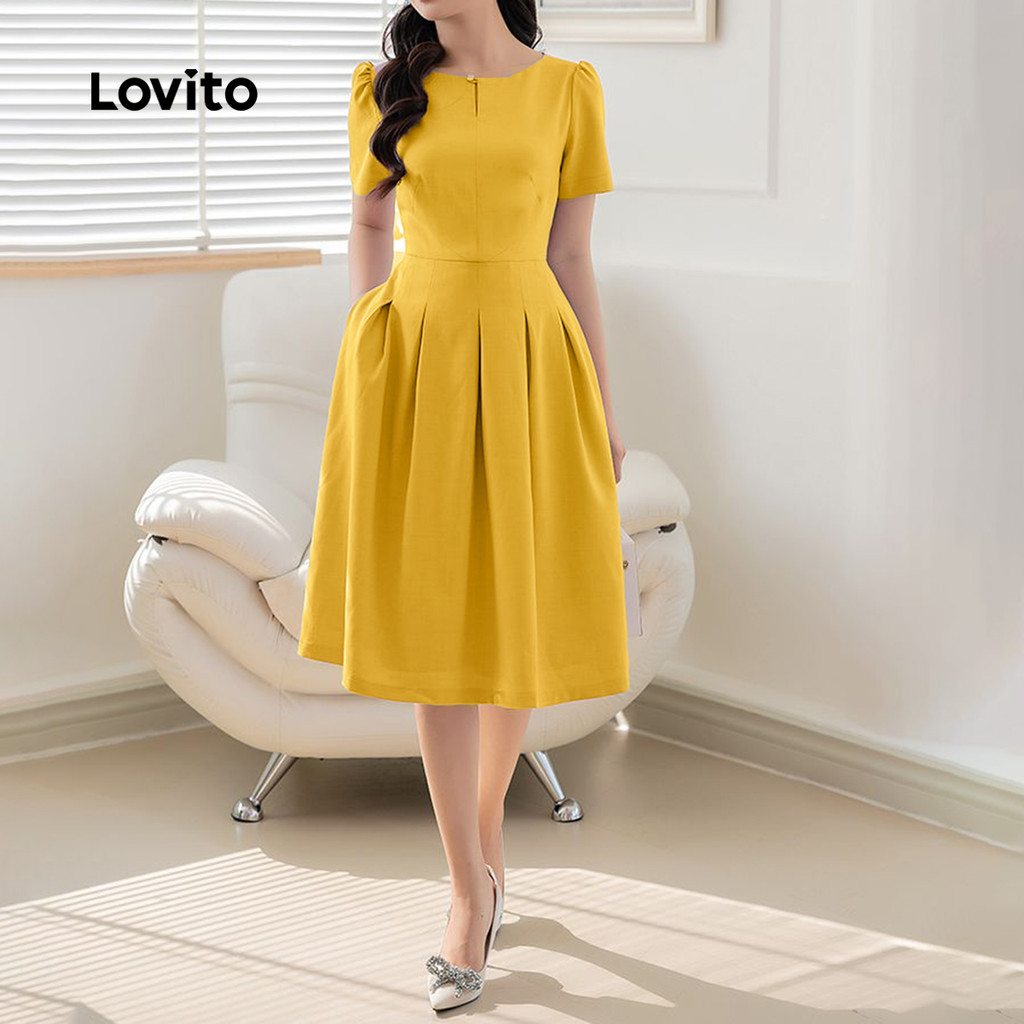 (New Lovito) Vestido Elegante de Pregas para Primavera/verão para Mulheres L143ED393
