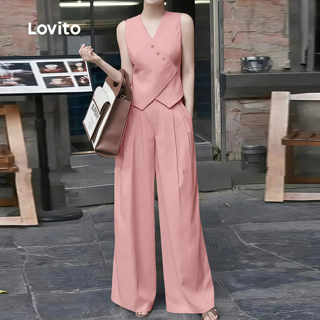 (NEW) Lovito Tops ou Calças Elegantes com Zíper Assimétrico para Primavera/verão para Mulheres L154LD021