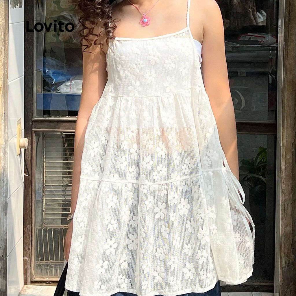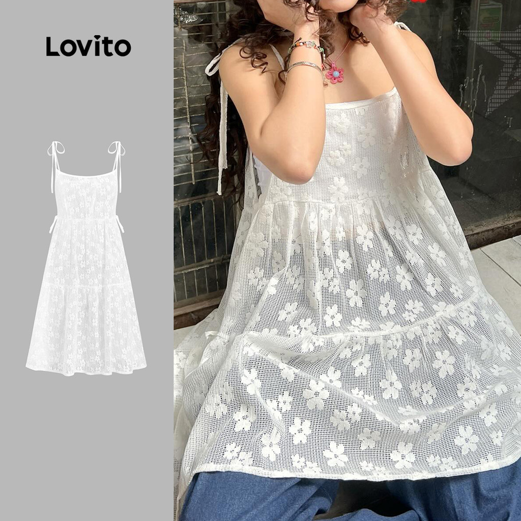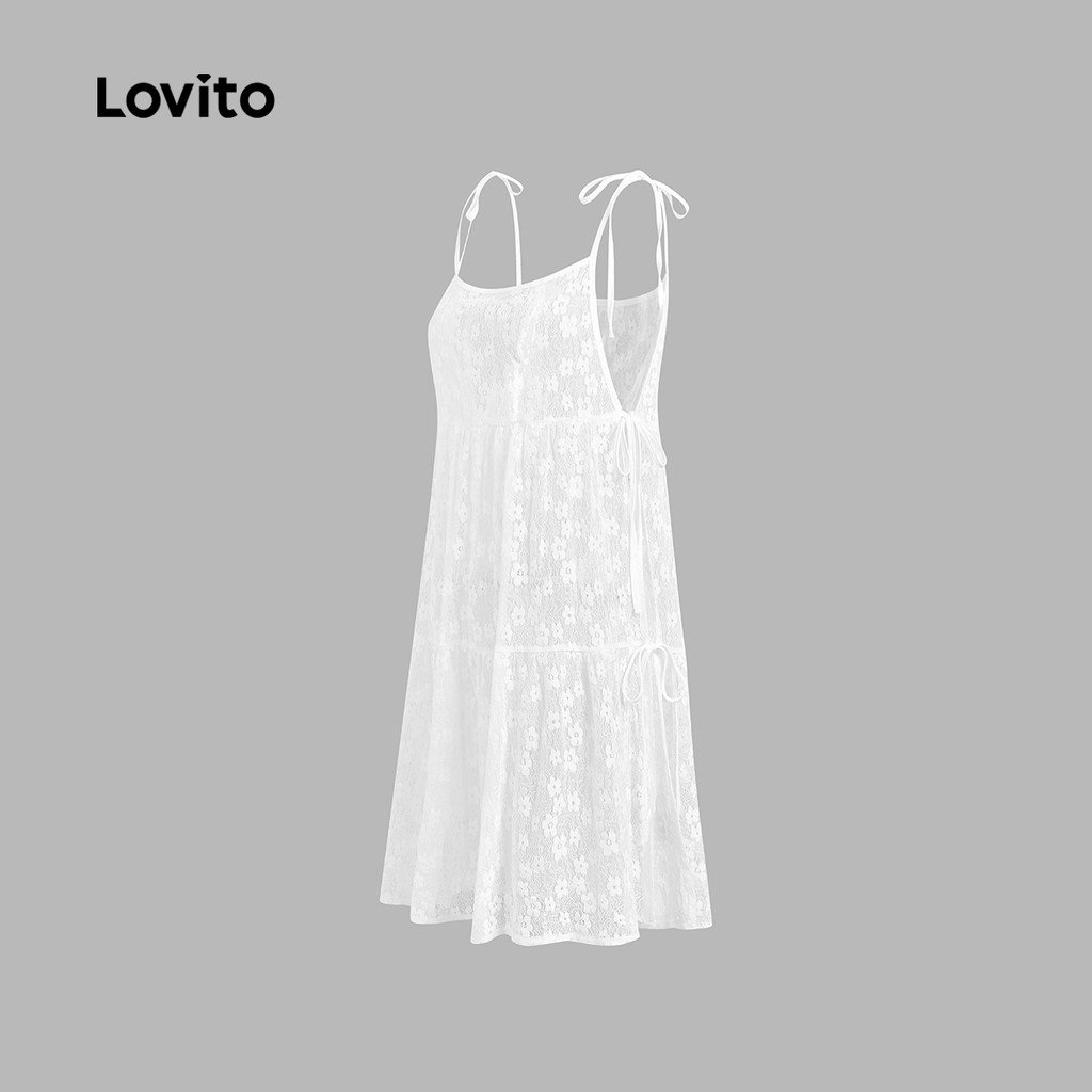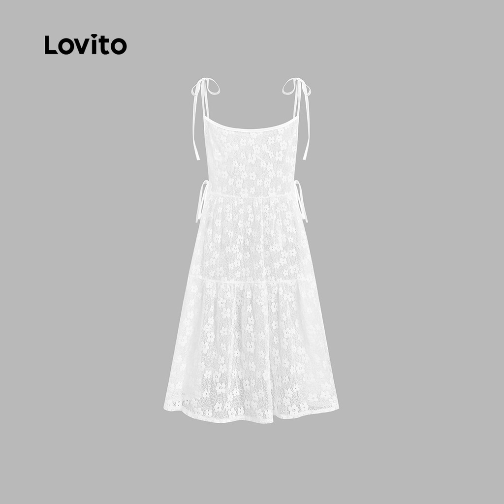 Lovito Vestido Feminino Branco Casual Liso com Cadarço para Primavera/Verão L136AD076