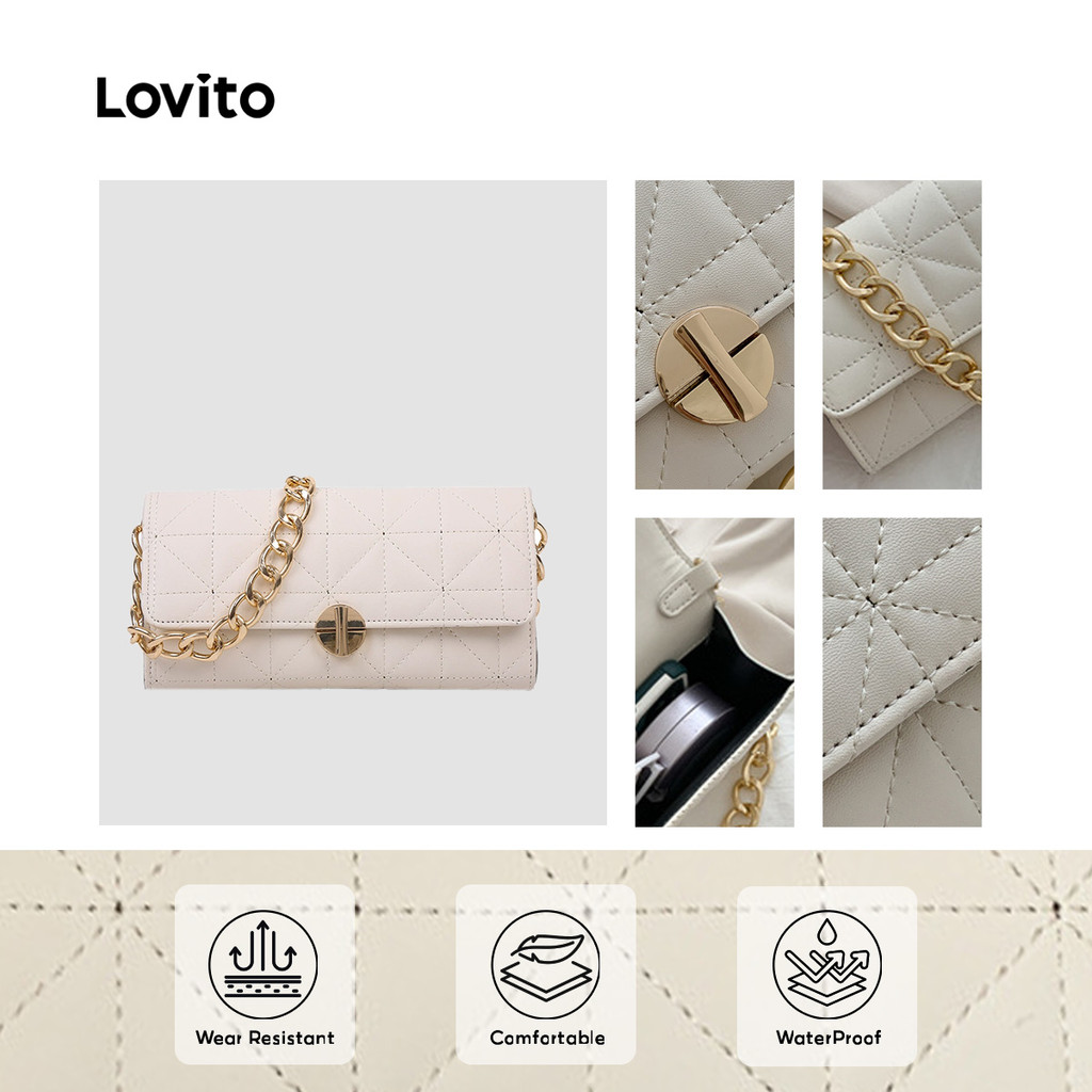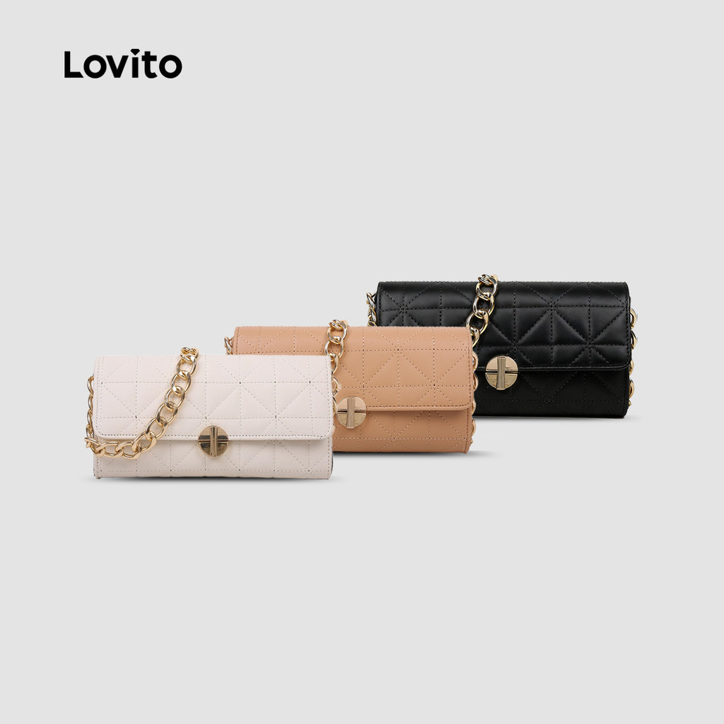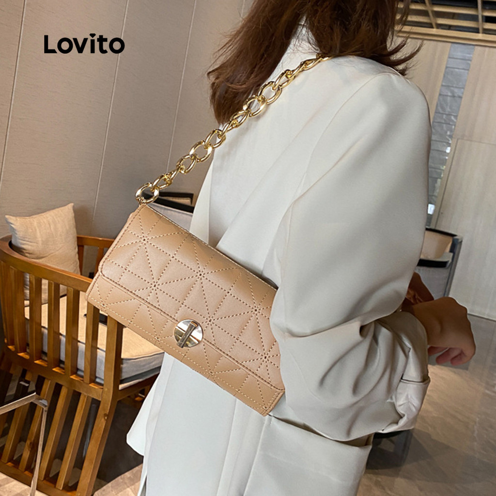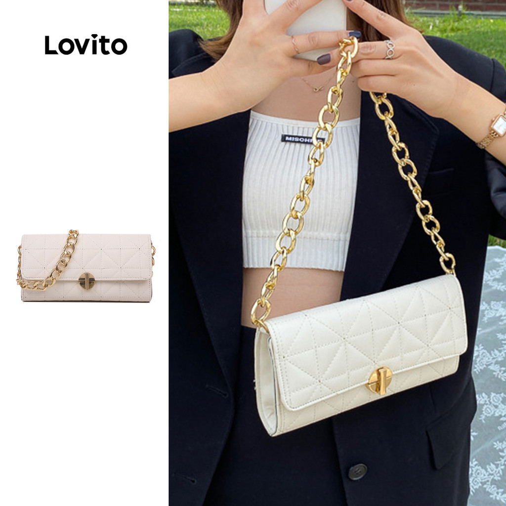 (NEW) Lovito Bolsa de Ombro Pequena de Corrente de Metal Casual para mulheres LFA98016