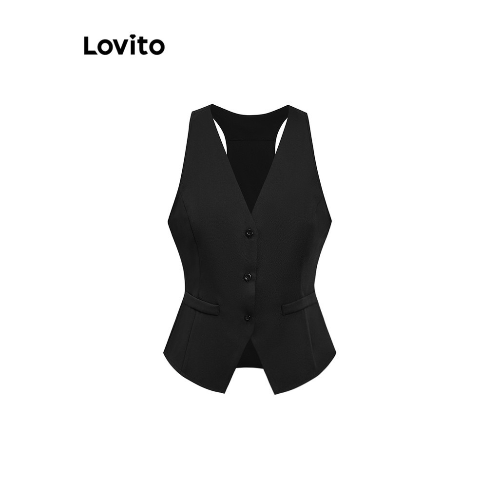 (KOL‘s pick) Lovito Elegante Top Tank com Botões Frontais para Mulheres L80ED157(Multicolorido)