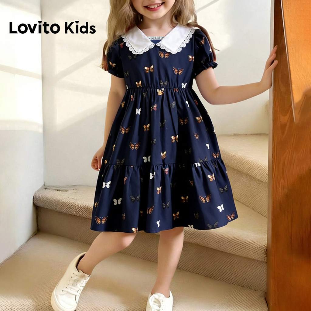 Lovito Kids Vestido Fofo de Renda Azul Marinho para Primavera/verão para Meninas L168LD185