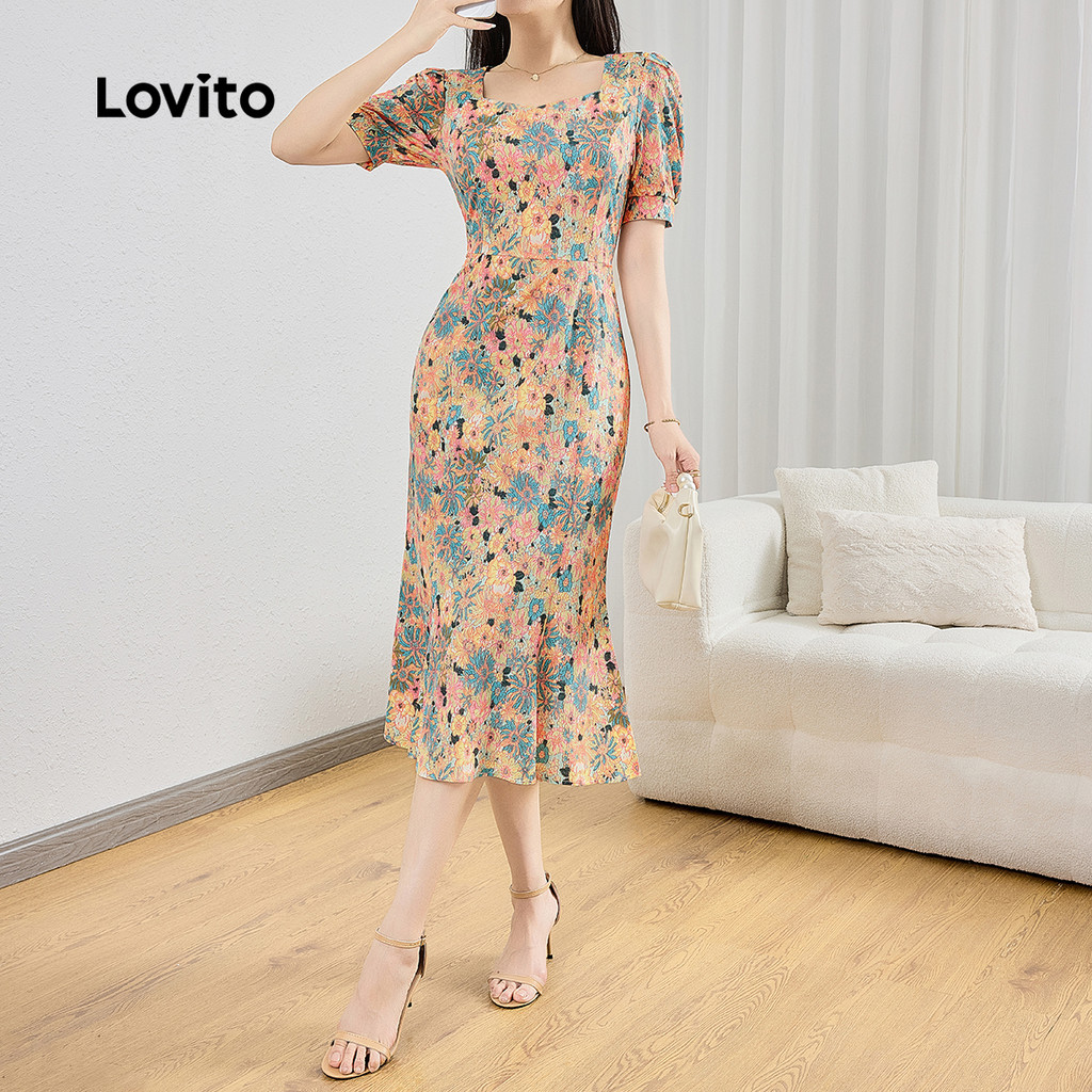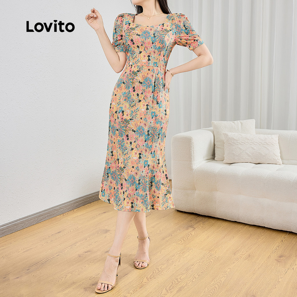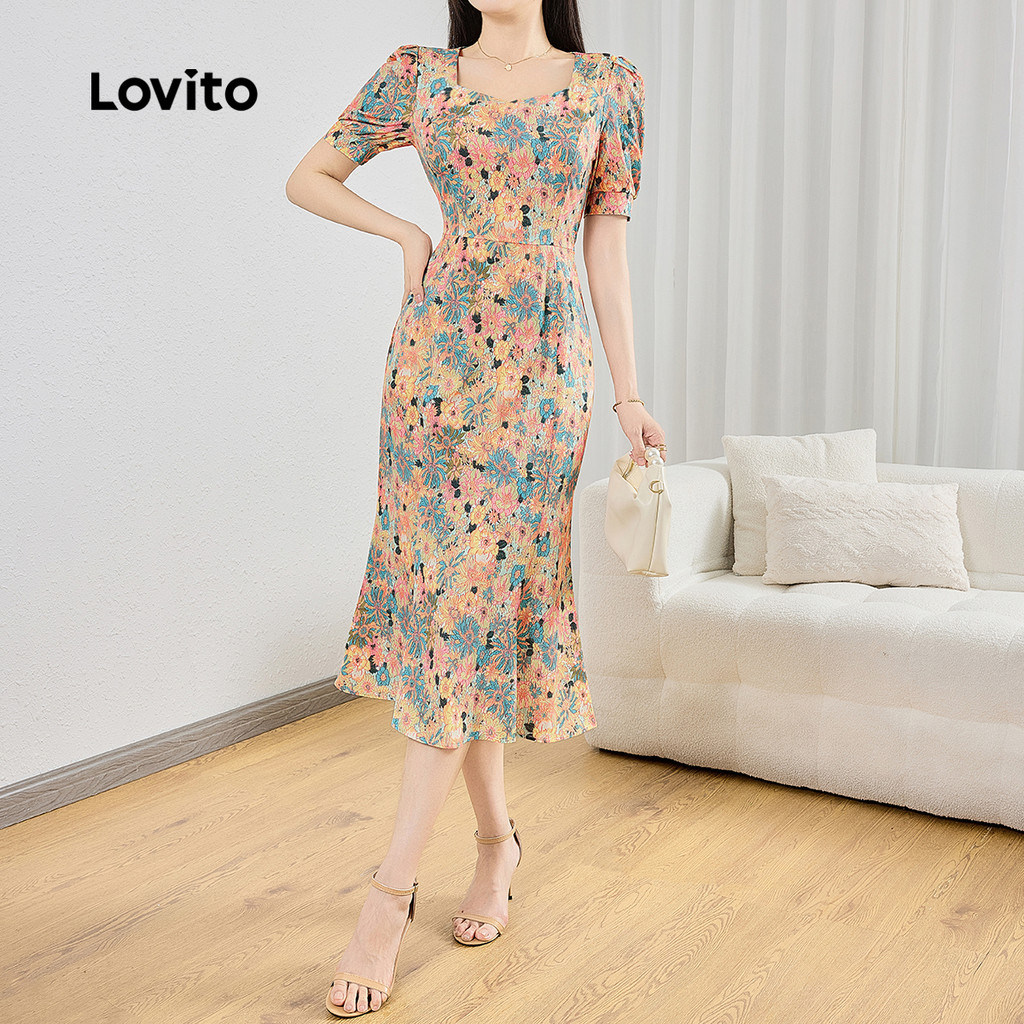 Lovito Vestido Elegante Com Estrutura Floral E Multicolorido Para Primavera/verão Para Mulheres L134ED427