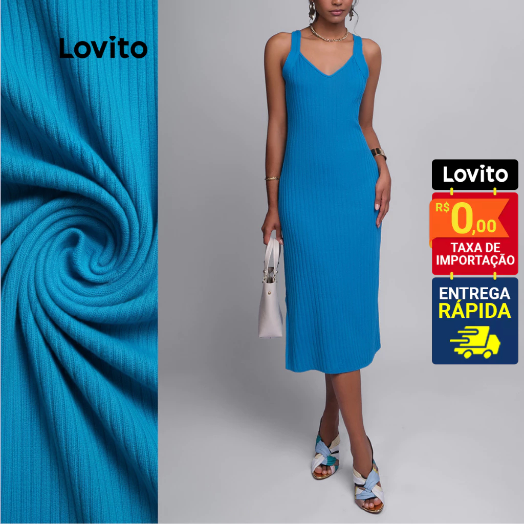Lovito Vestido Midi Tricot Feminino LB942BRL972