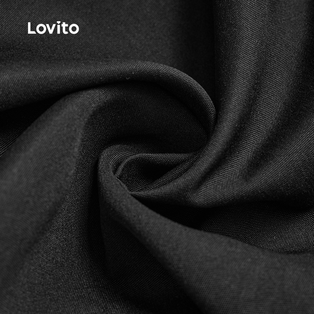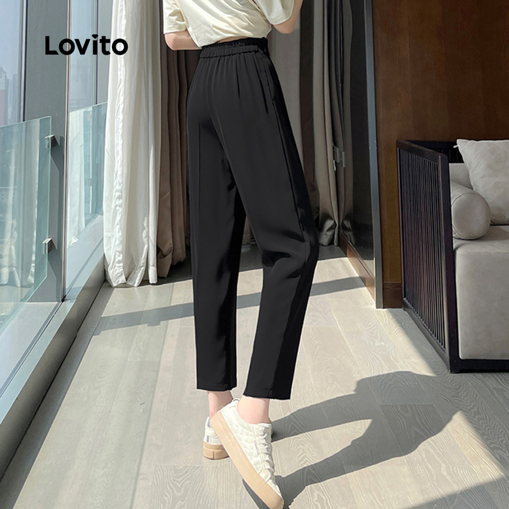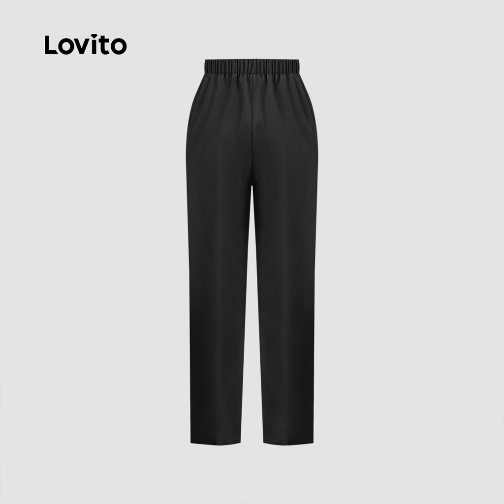 Lovito Calças Casuais com Botões para Primavera/verão Calças Pretas para mulheres L143AD1610